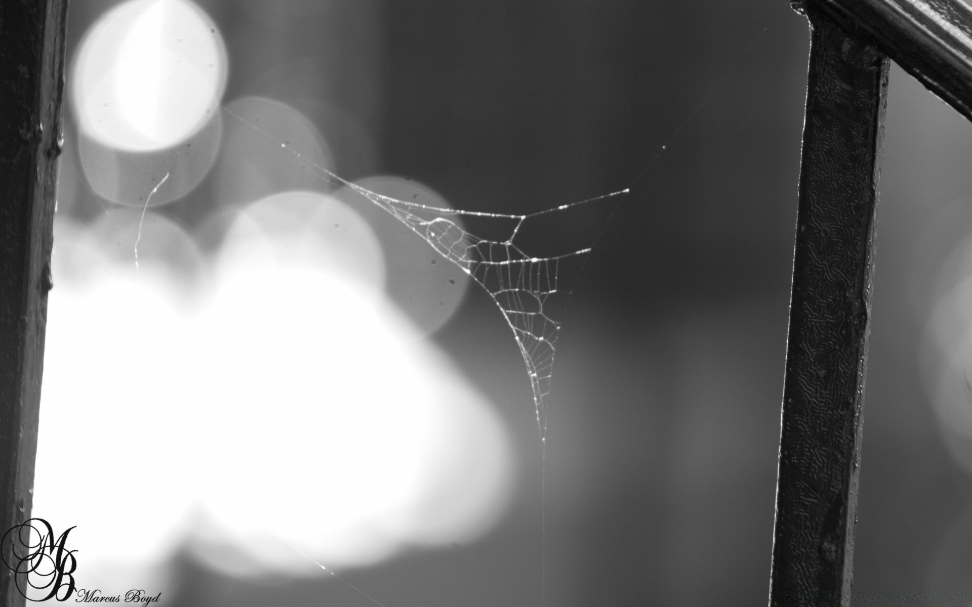 Black and white photo with cobwebs on the background of the city