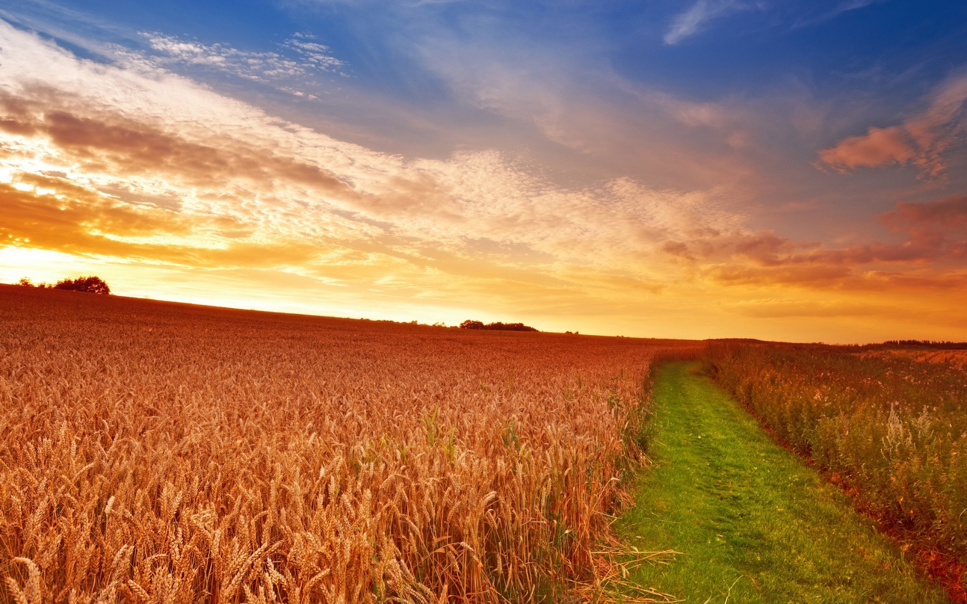 The scarlet dawn in the fields of wheat