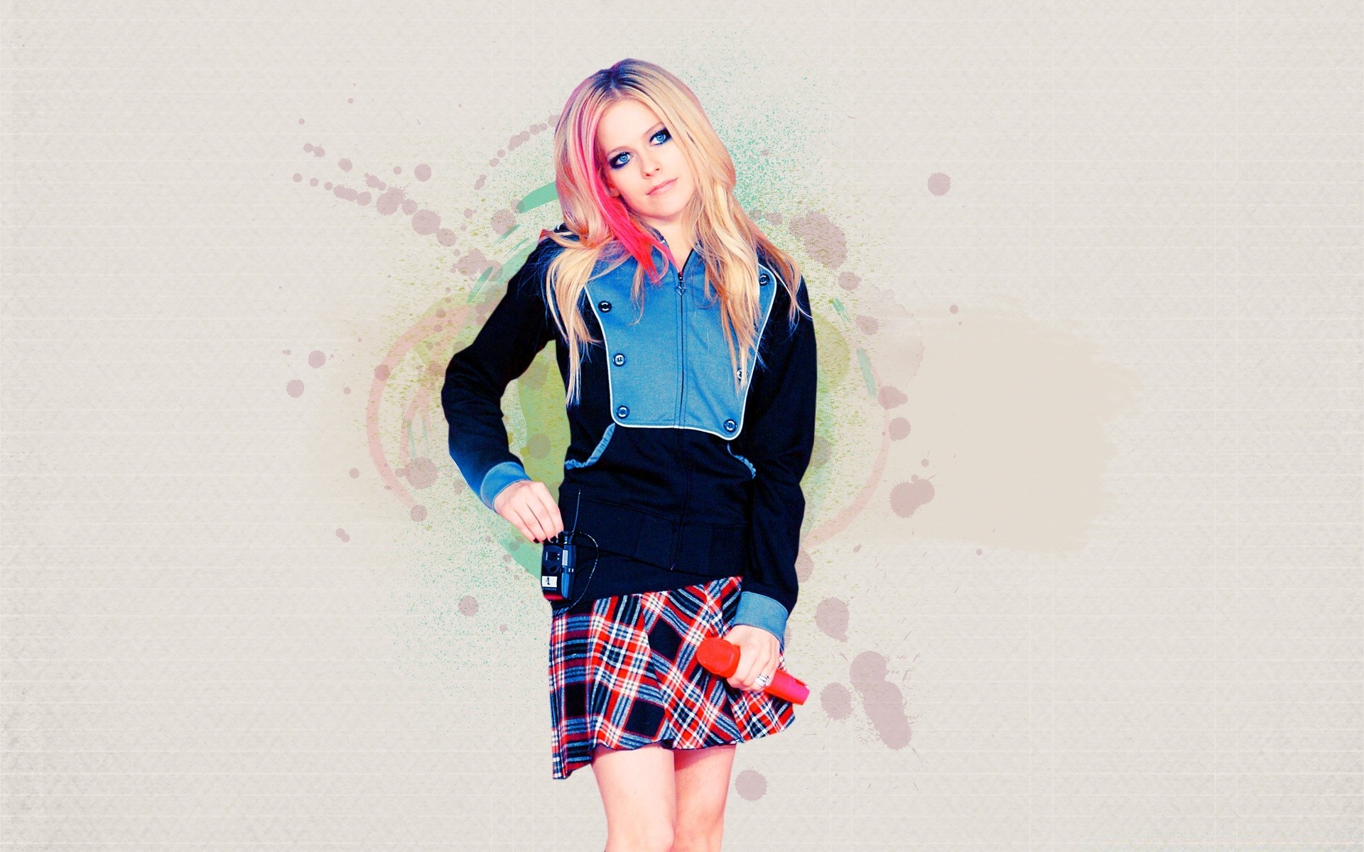 Singer Avril Lavigne with a microphone in her hands