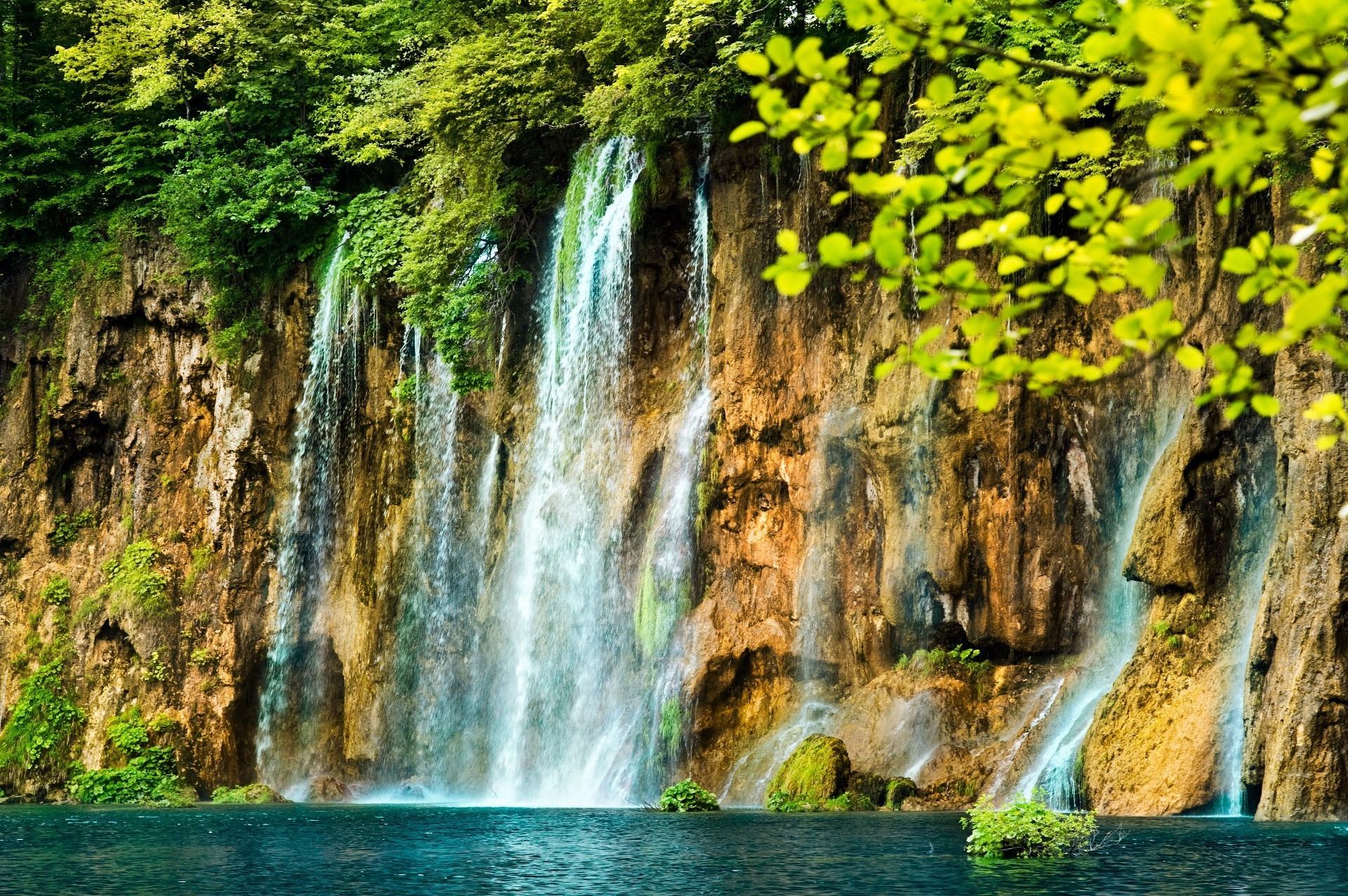Strikingly bright colors of the landscape with rocks and the sea at sunset