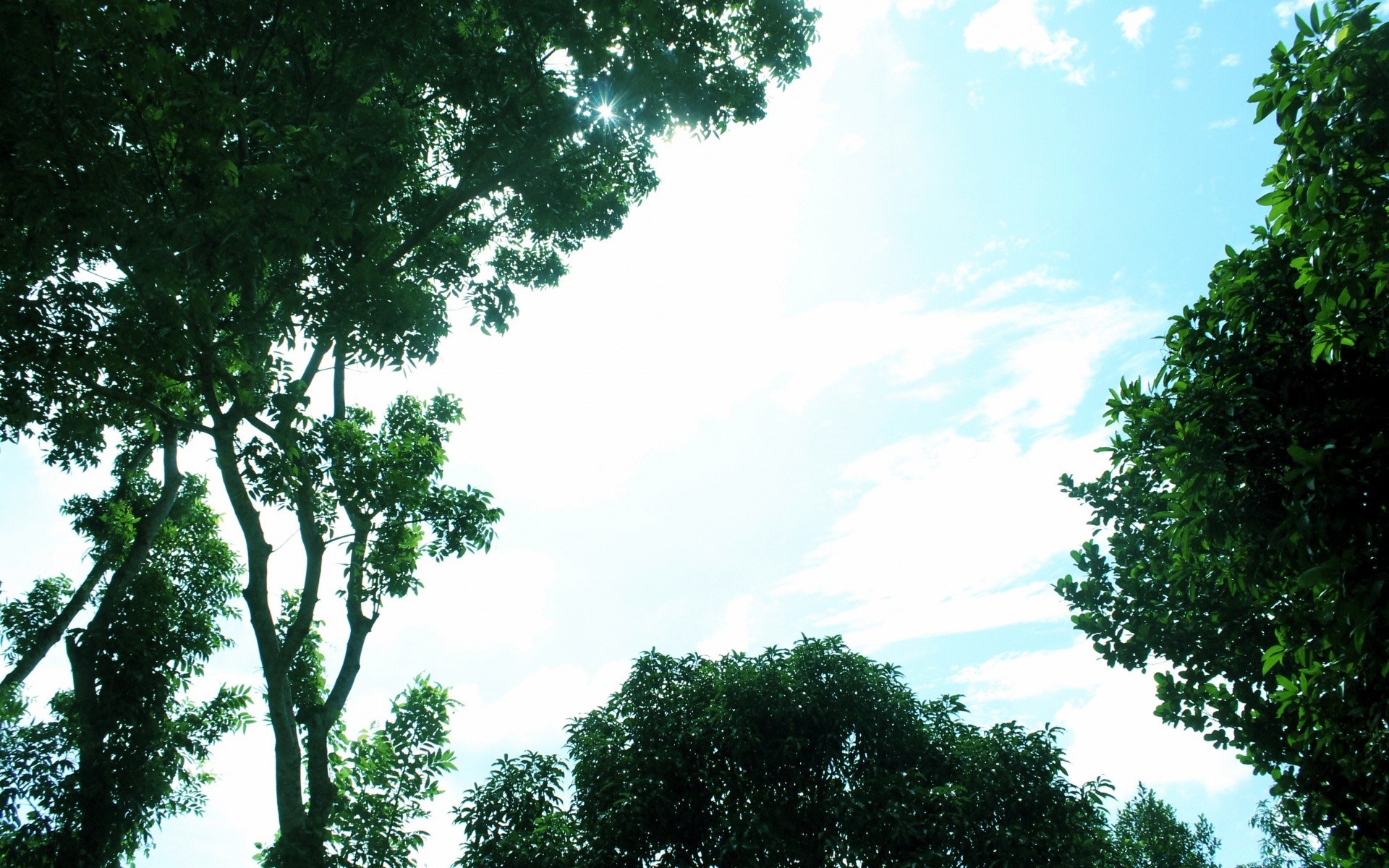 Green trees against a blue sky