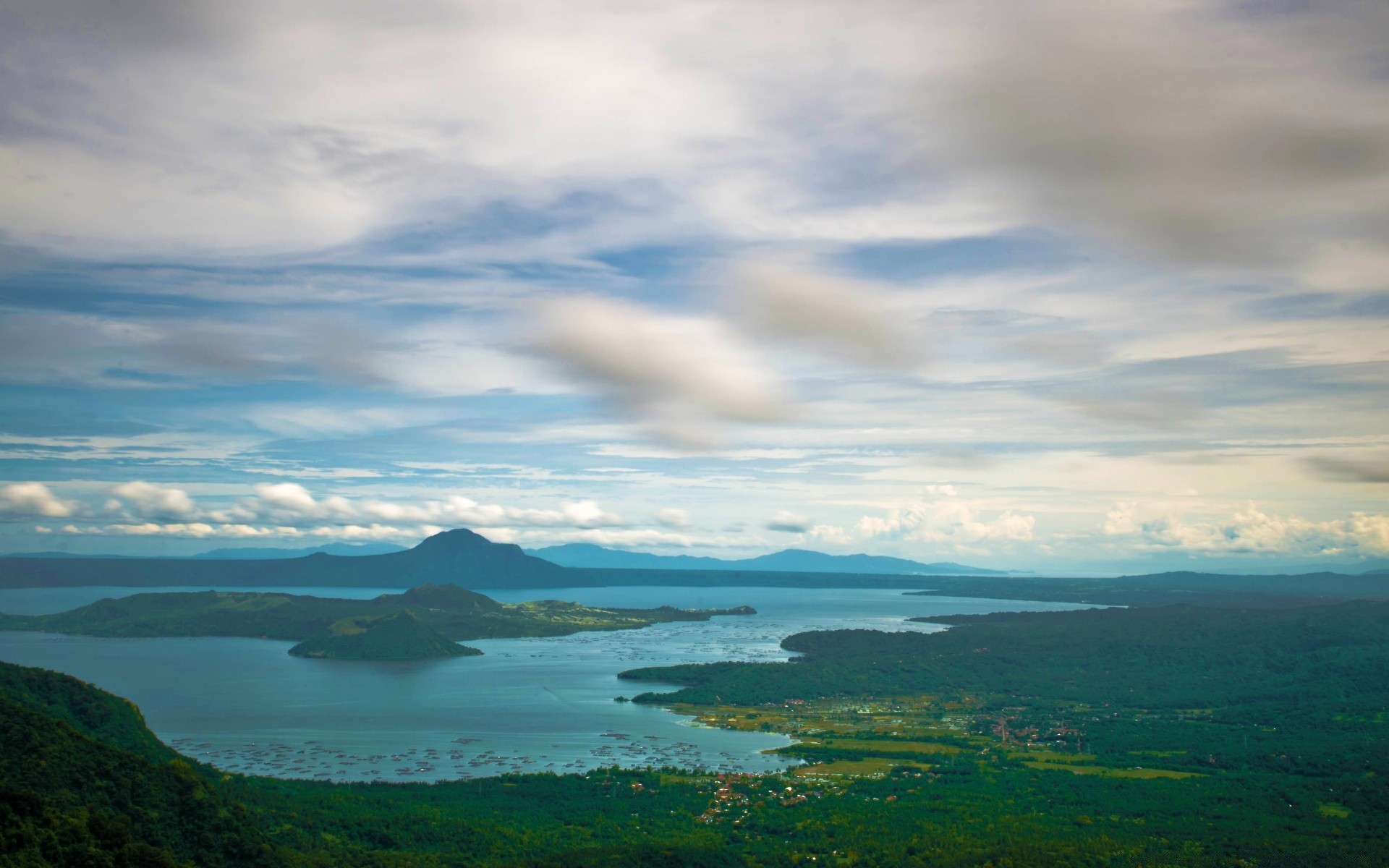 A lonely sailing boat on the water surface of a tropical sea against a cloudy sky