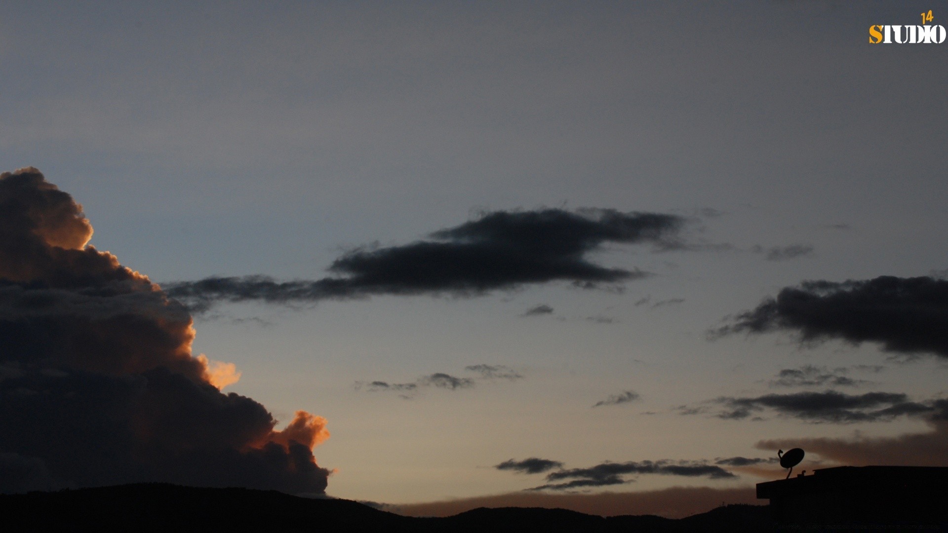 The sky is covered with yellow-blue clouds at dawnThe sky is covered with yellow-blue clouds at dawn