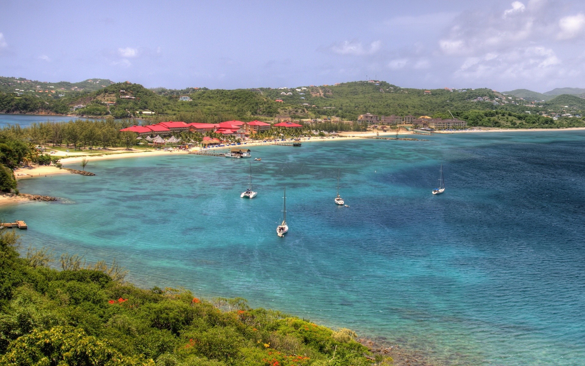 A boy in a panama hat with a fishing rod sits on the stone shore of the blue sea during the day