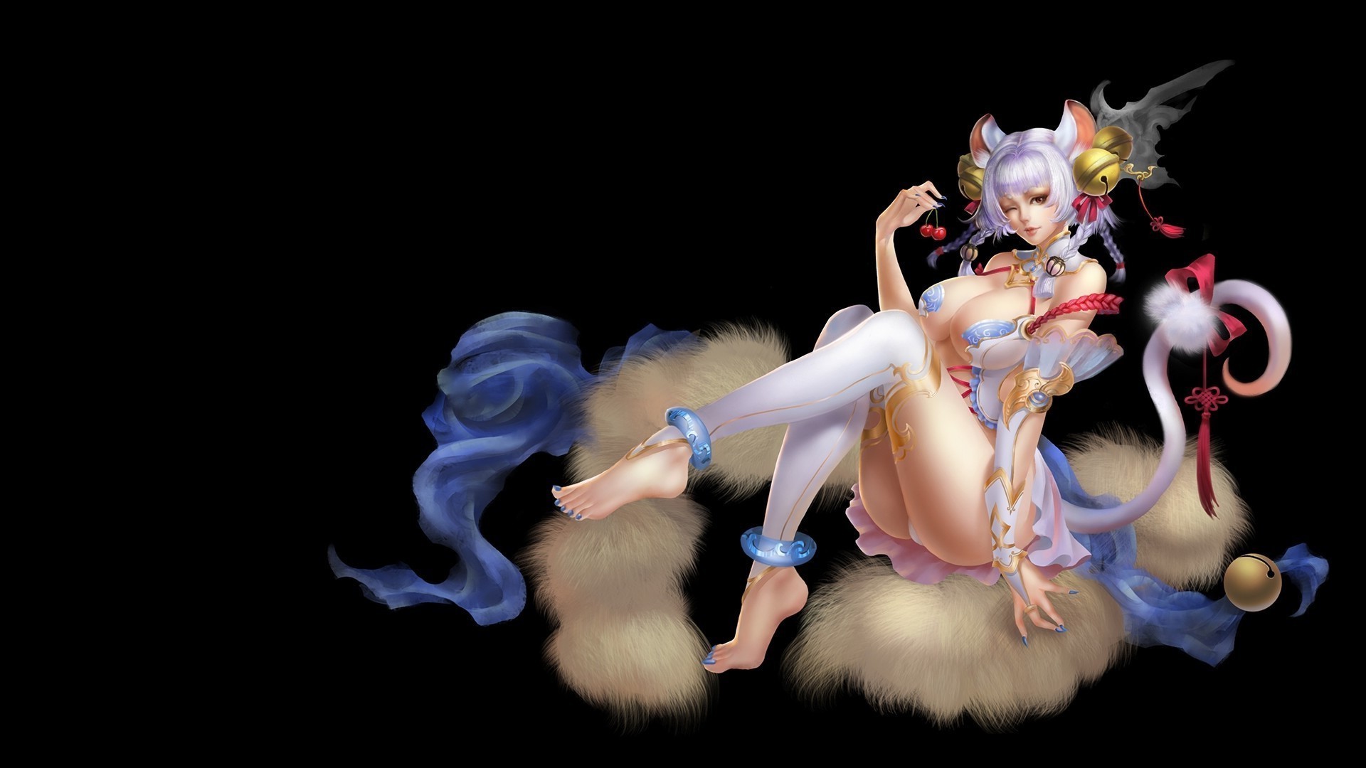 Anime girl on a cloud in ribbons