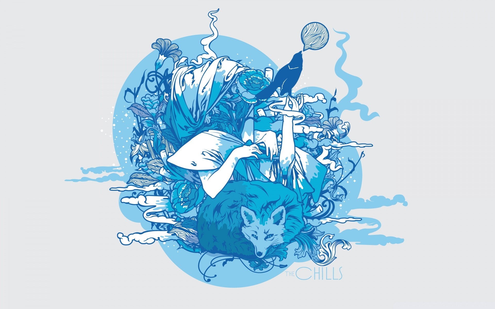 Illustration in the form of a fox, a bird and a woman's handsIllustration in the form of a fox, a bird and a woman's hands