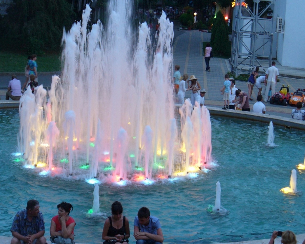 Poster for the TV series. The main characters are sitting above the city at the height of a bird's flight