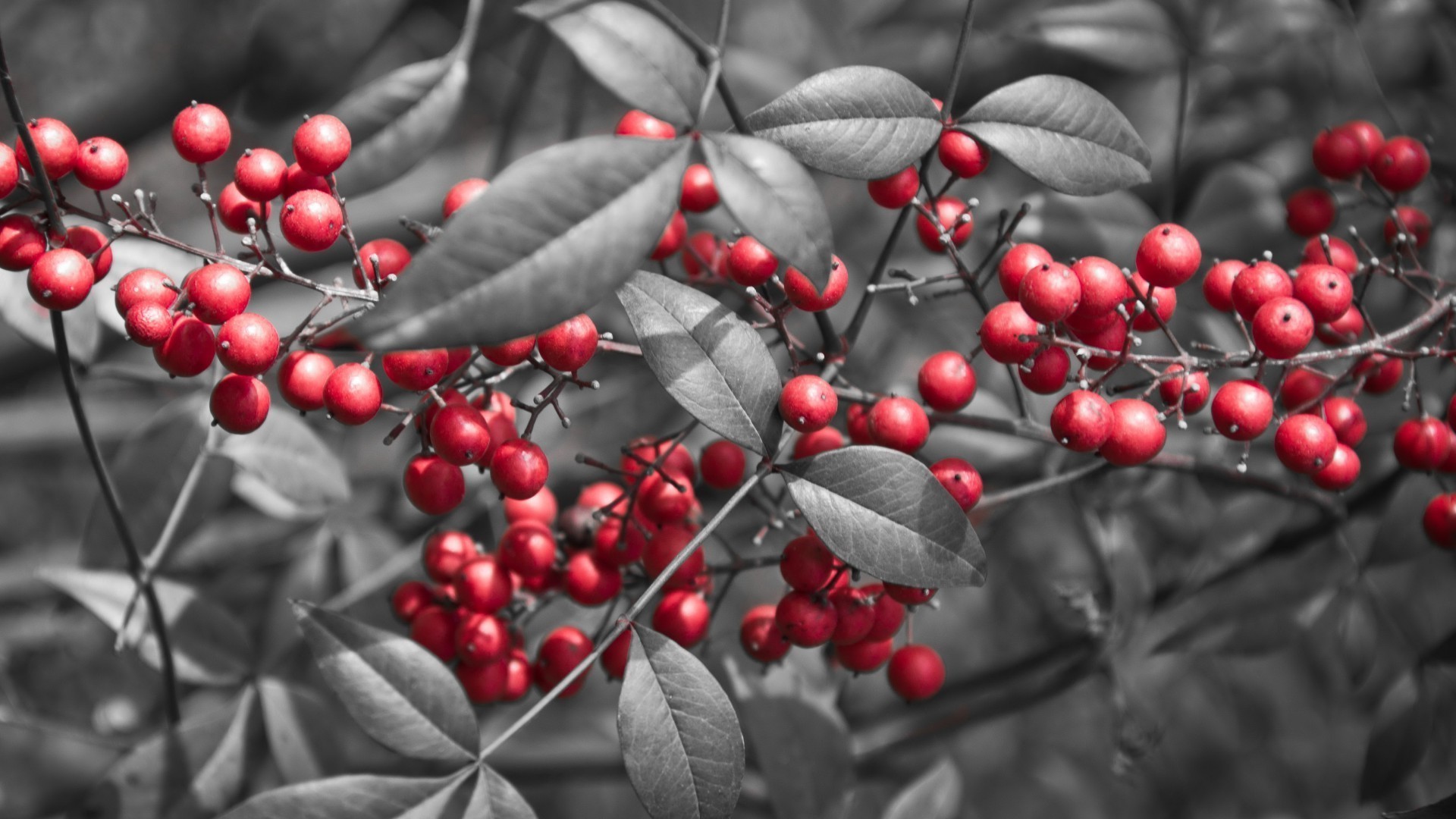 Snow-covered tree branches on the background of a crimson sunsetSnow-covered tree branches on the background of a crimson sunset