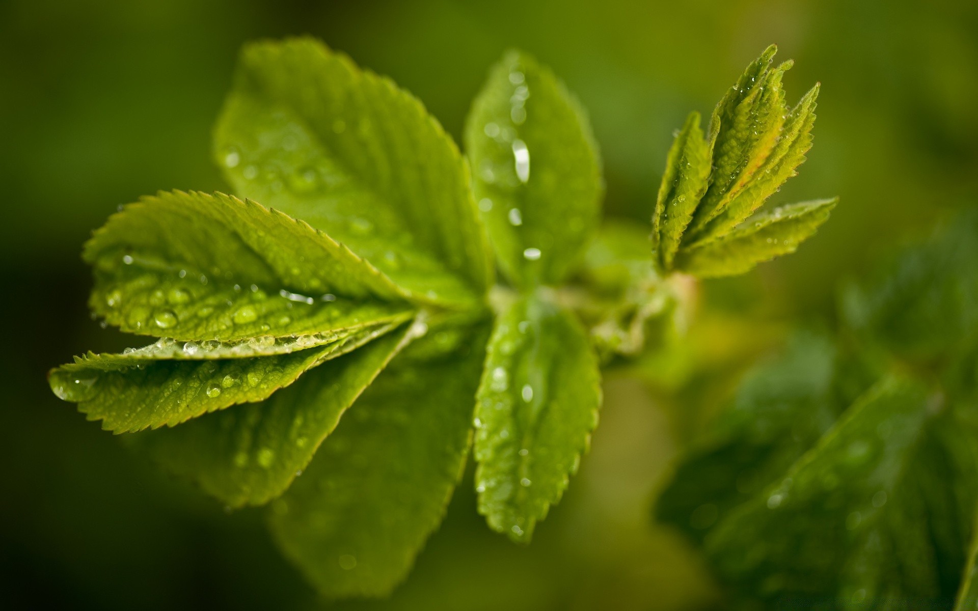 Macro photography of a branch with green leaves