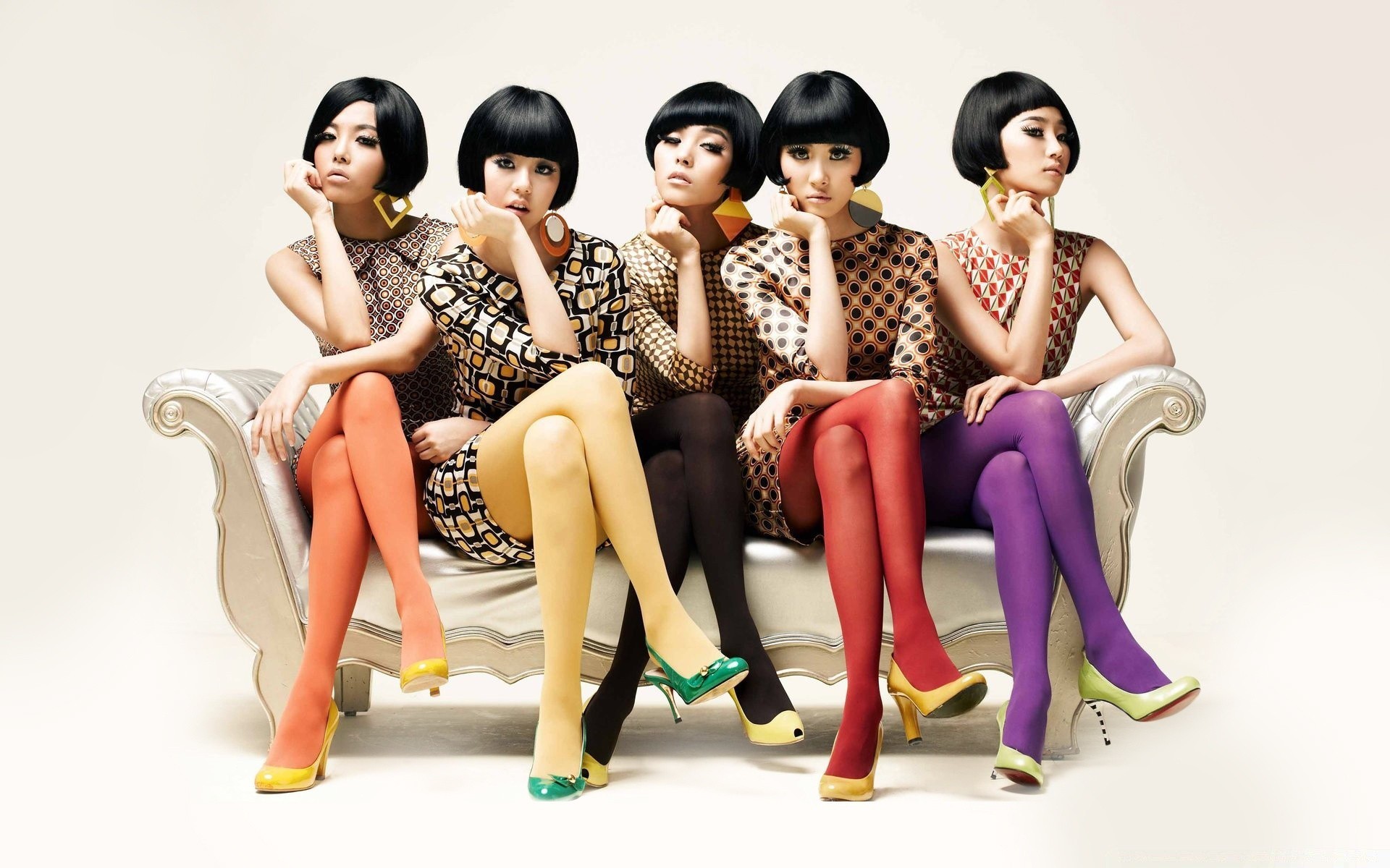 Girls in colorful tights on the couch