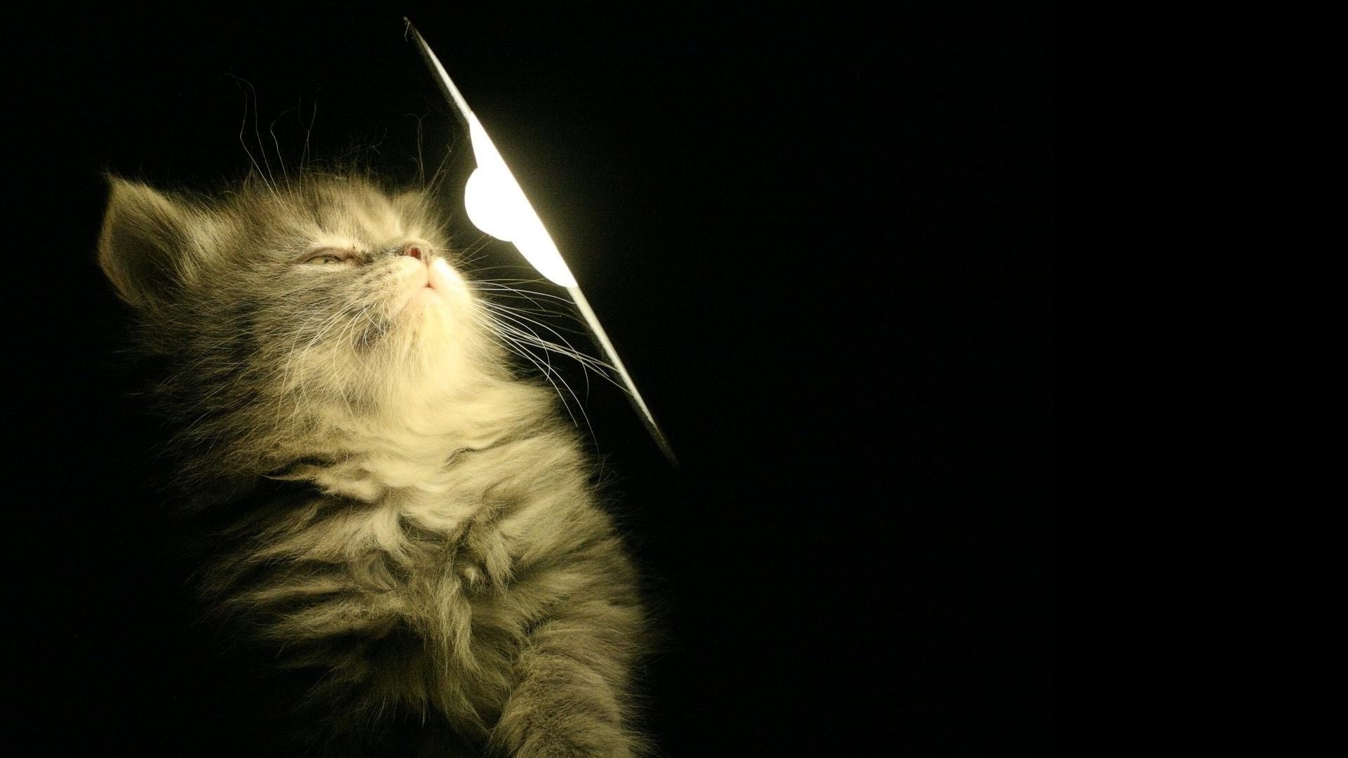 A kitten who looks at a light bulb