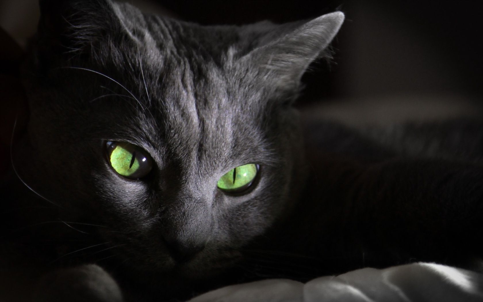 Portrait of a grey cat with green eyes