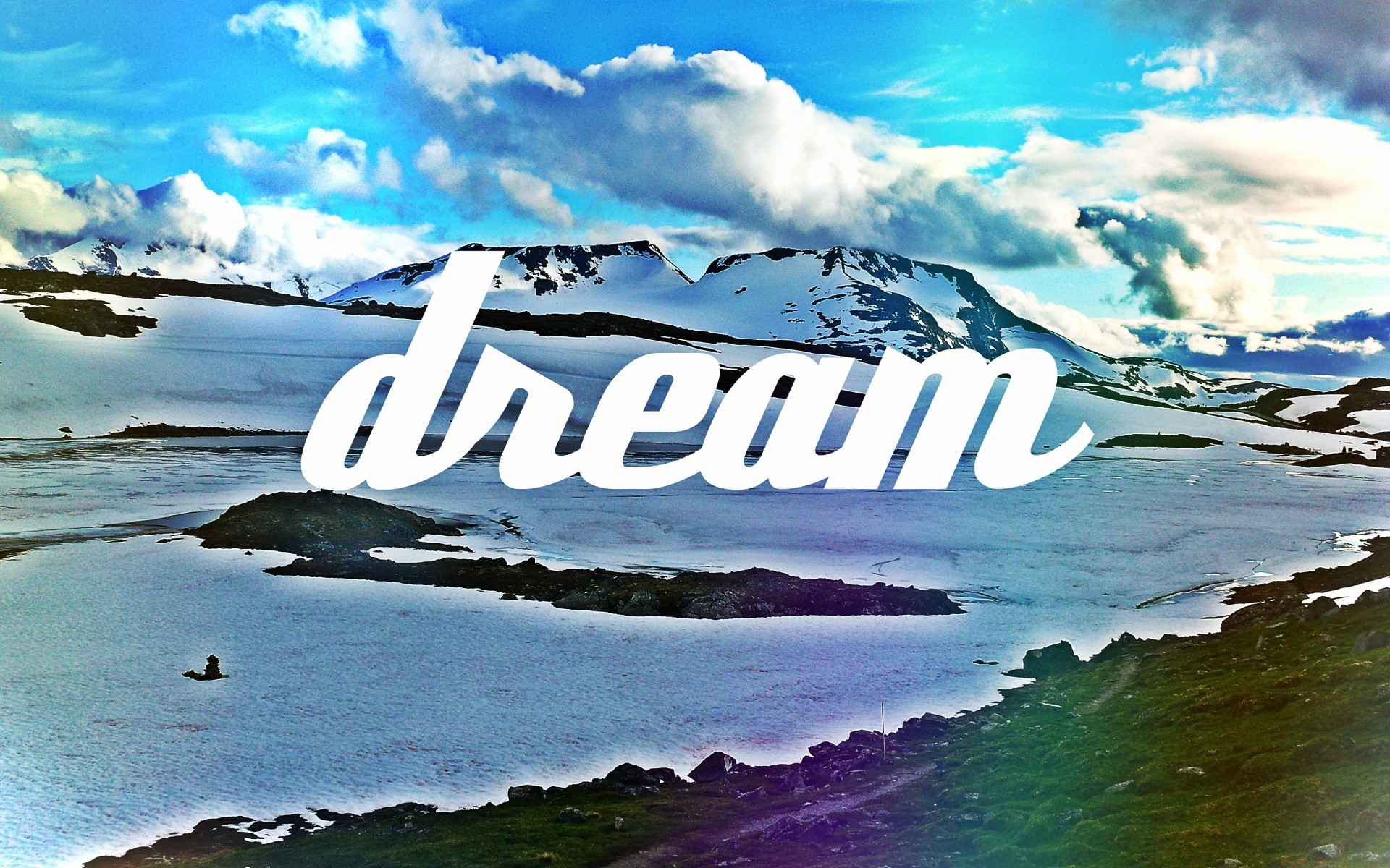 Cozy houses on the background of snow-capped mountains