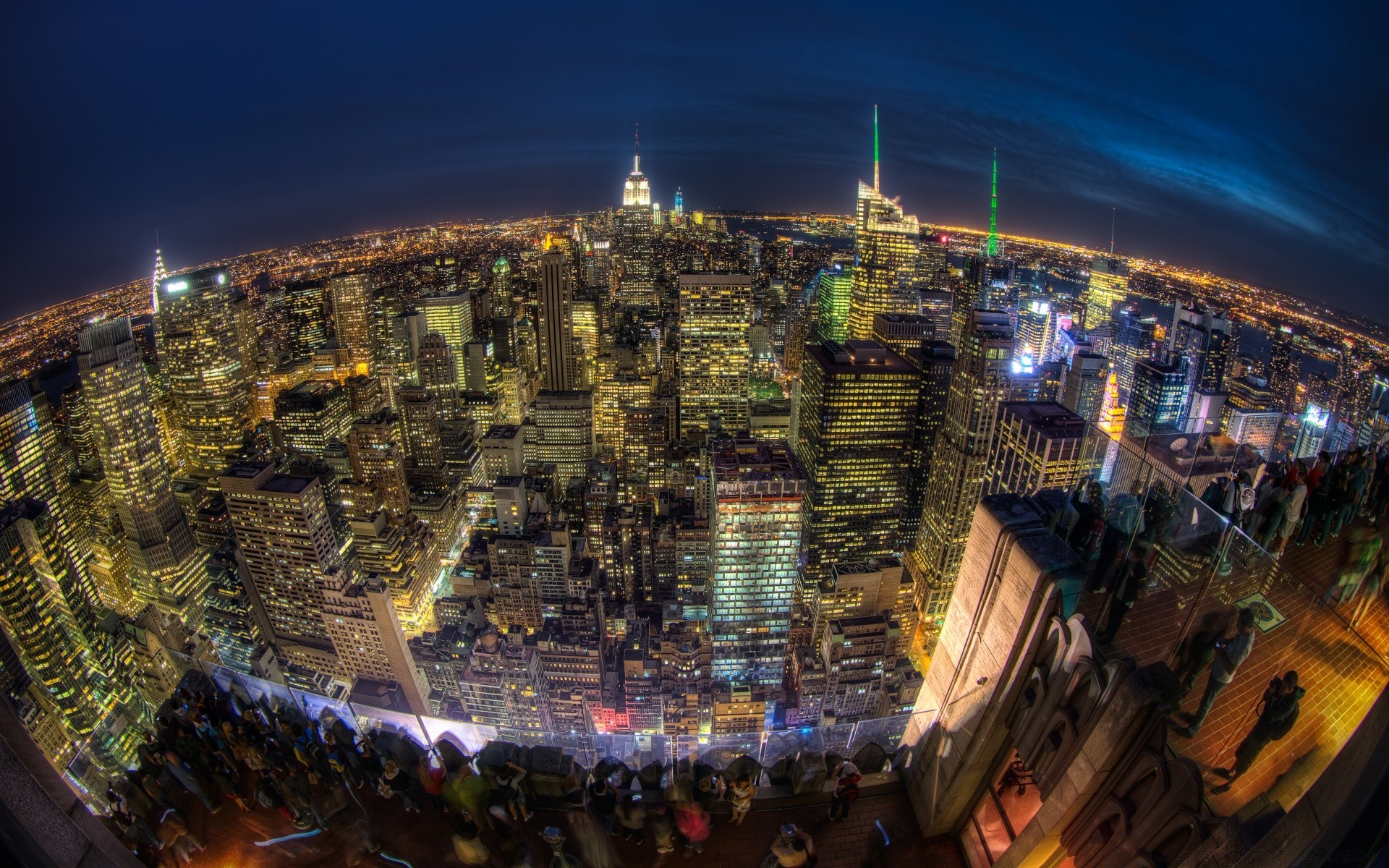 Wide angle photo of skyscrapers at night