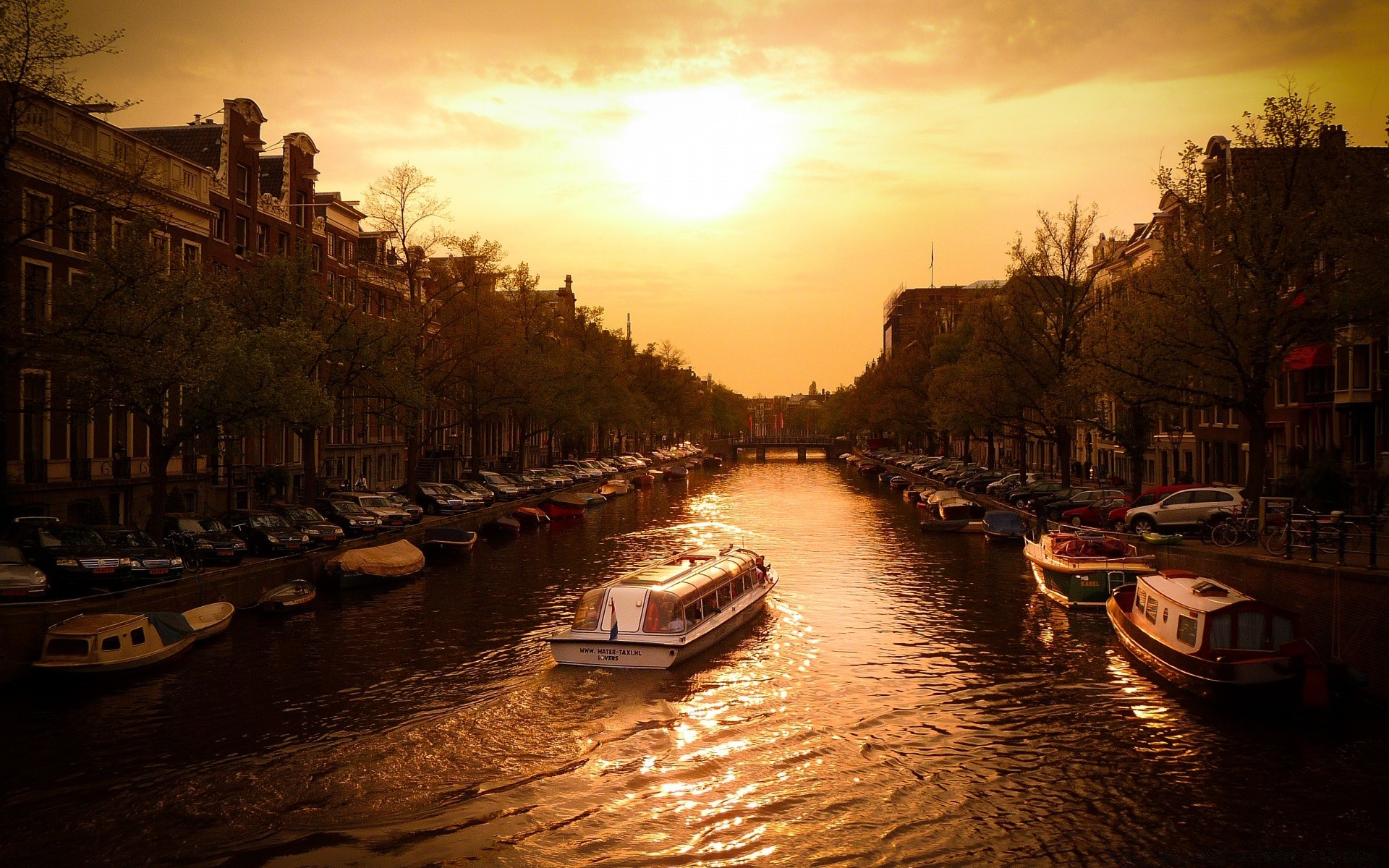 The mouth of the river at sunset in Europe