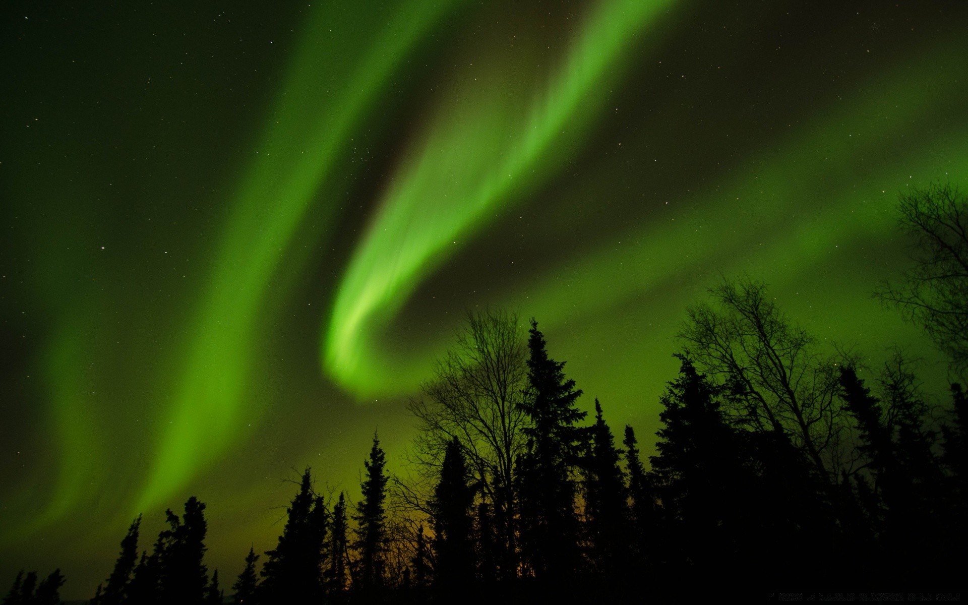 The setting sun, going beyond the edge of the forest, is reflected in the water surface