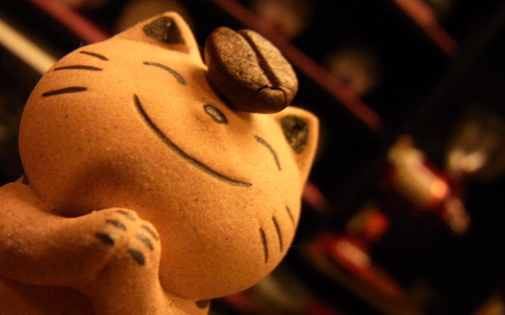 A cat who holds a coffee bean on his nose