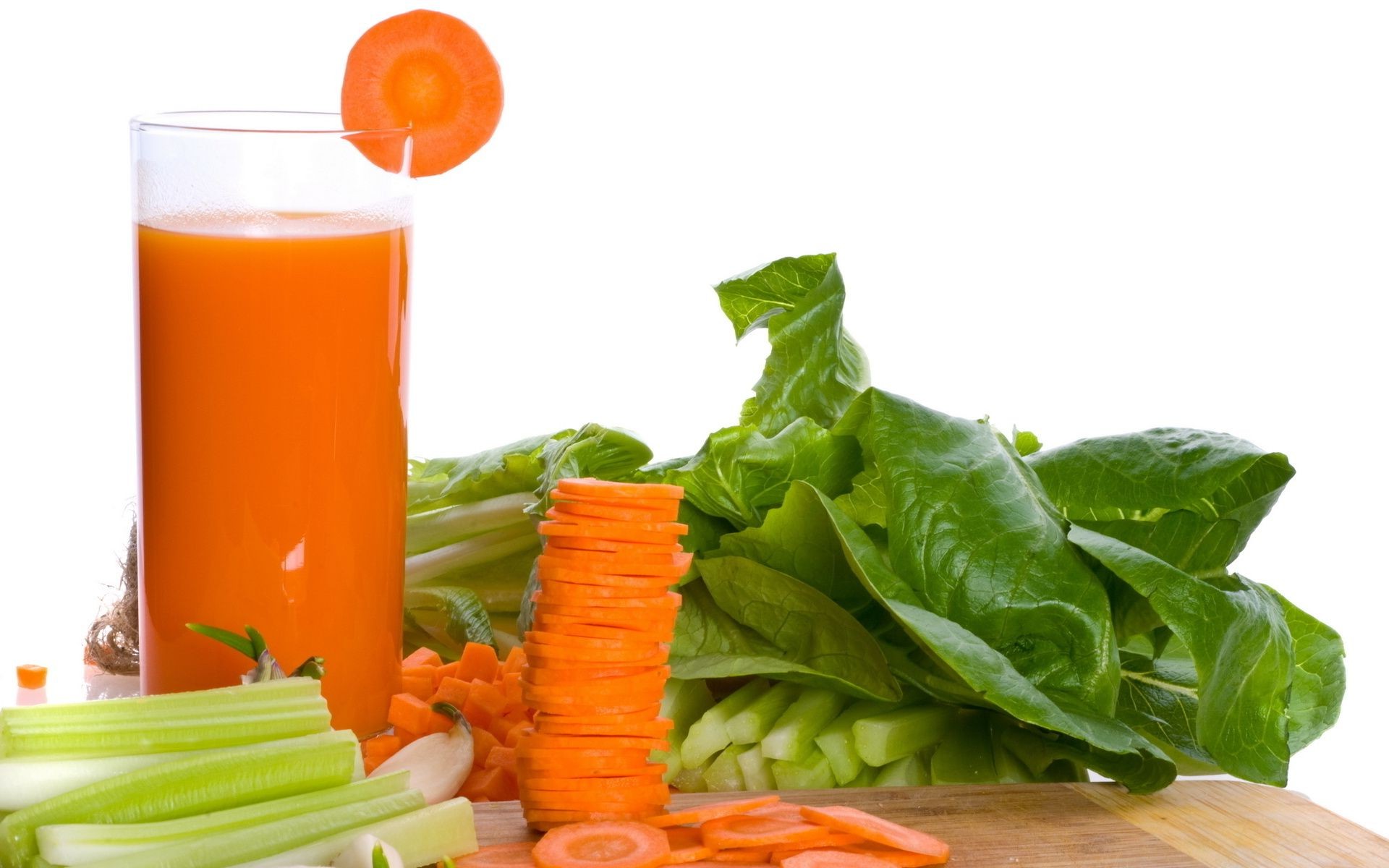 Chopped vegetables on the table and a glass of carrot juice