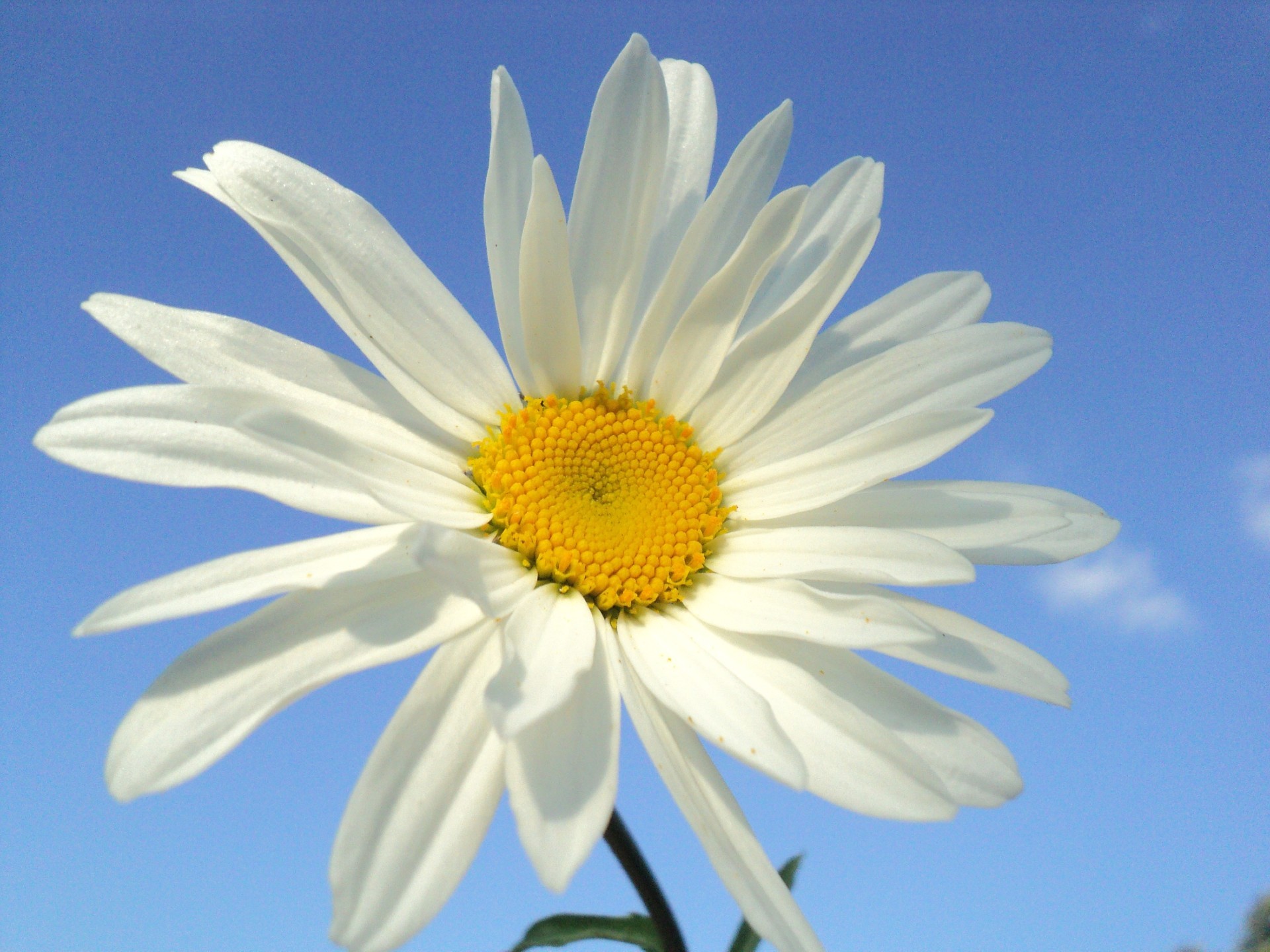 Daisy close-up against the sky