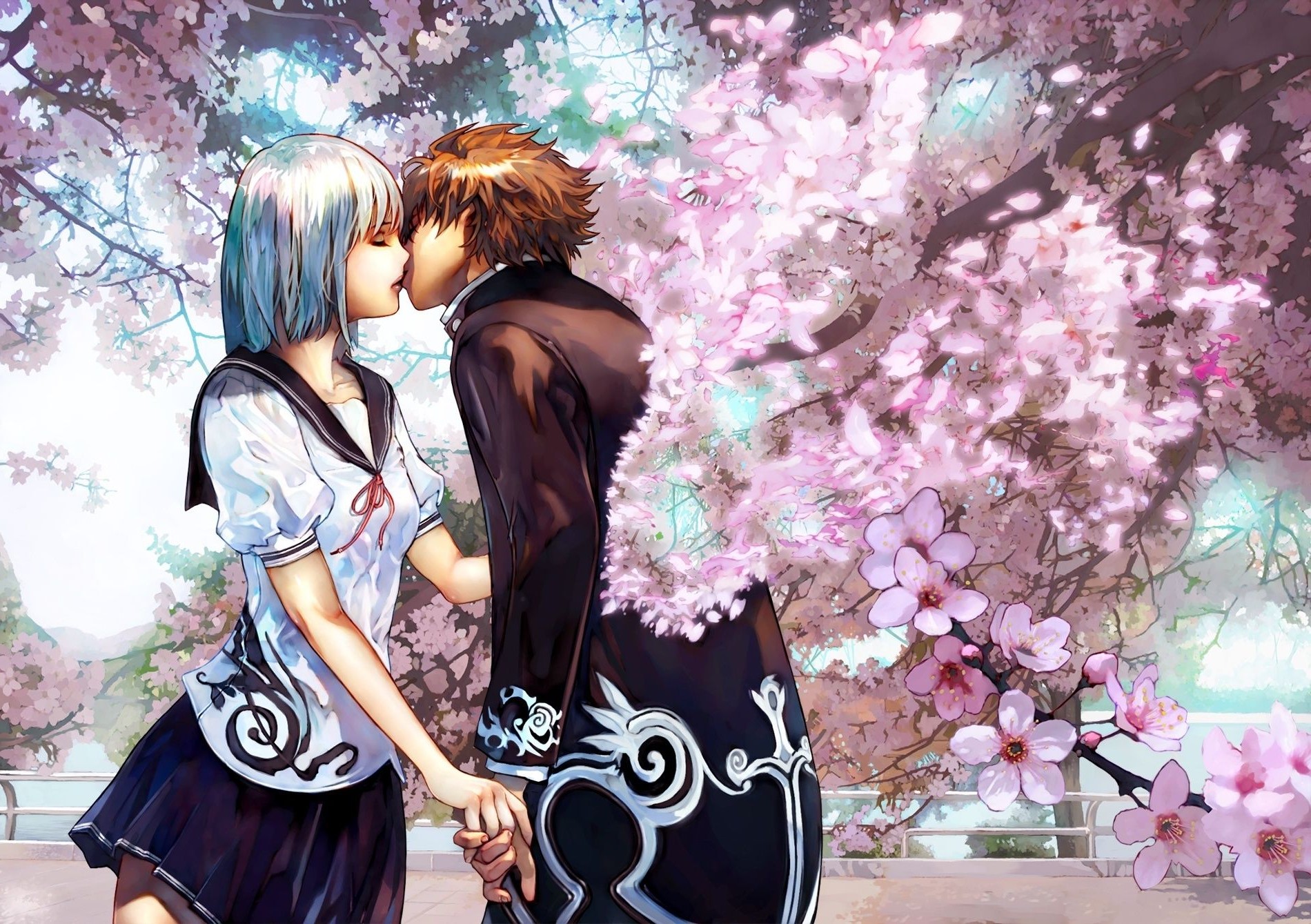 Cherry kiss cherry blossom kiss couple lovers
