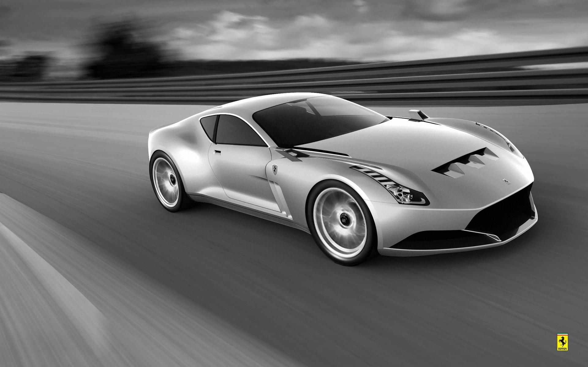 A low-slung car in gray tones