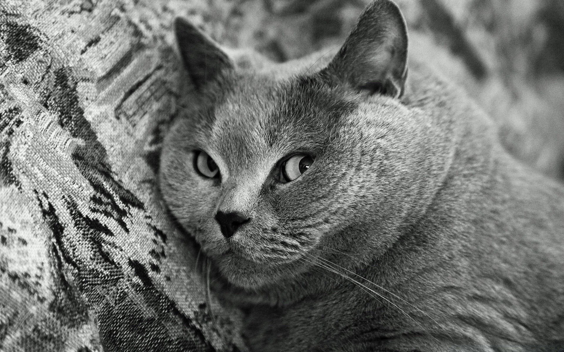 Monochrome photo of a big cat