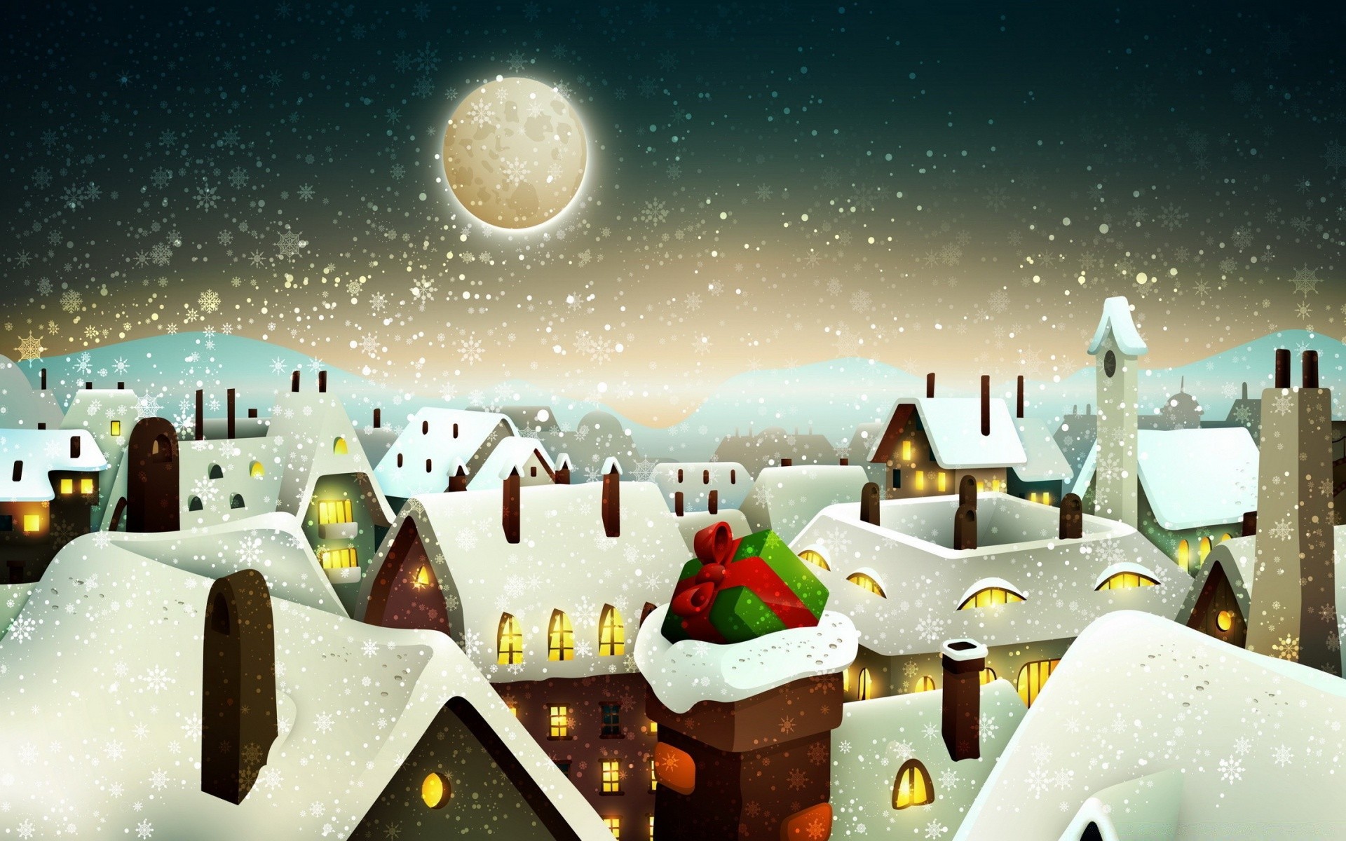 A teddy bear in a Christmas hat on the background of a Christmas tree and a gift