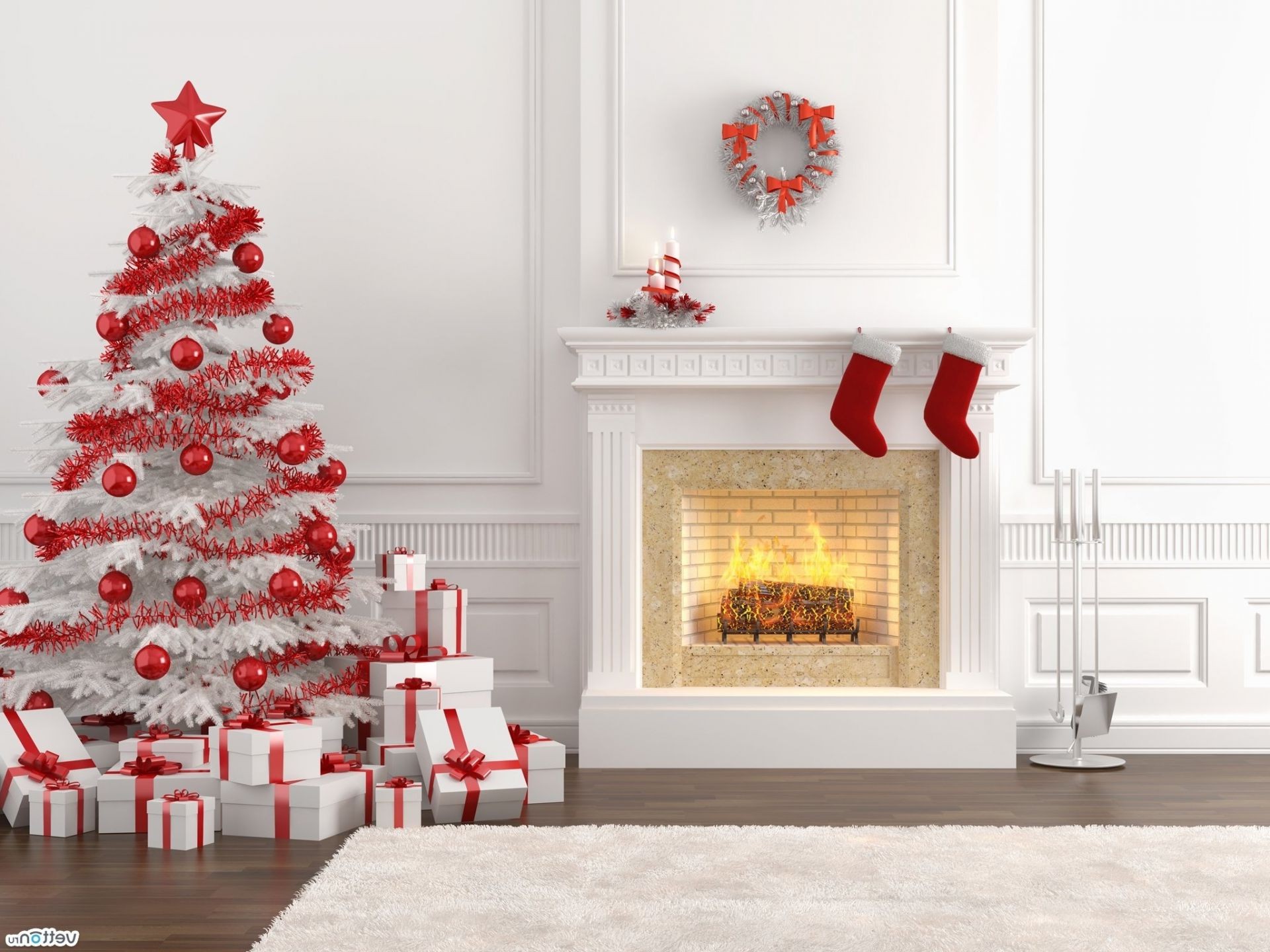 Waiting for a miracle. a girl by the fireplace and a decorated christmas tree. serpentine