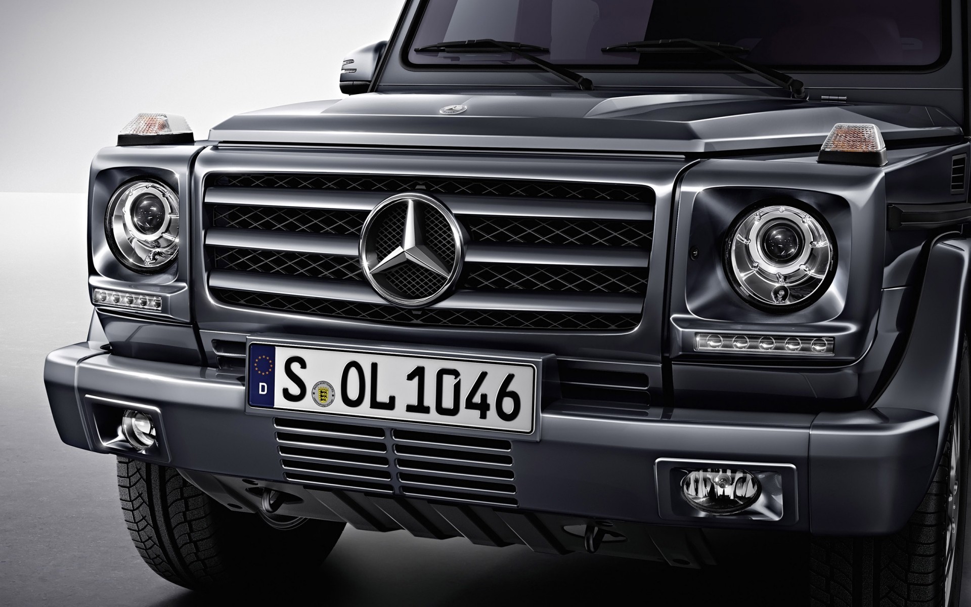Picture of a silver Mercedes without on a black background