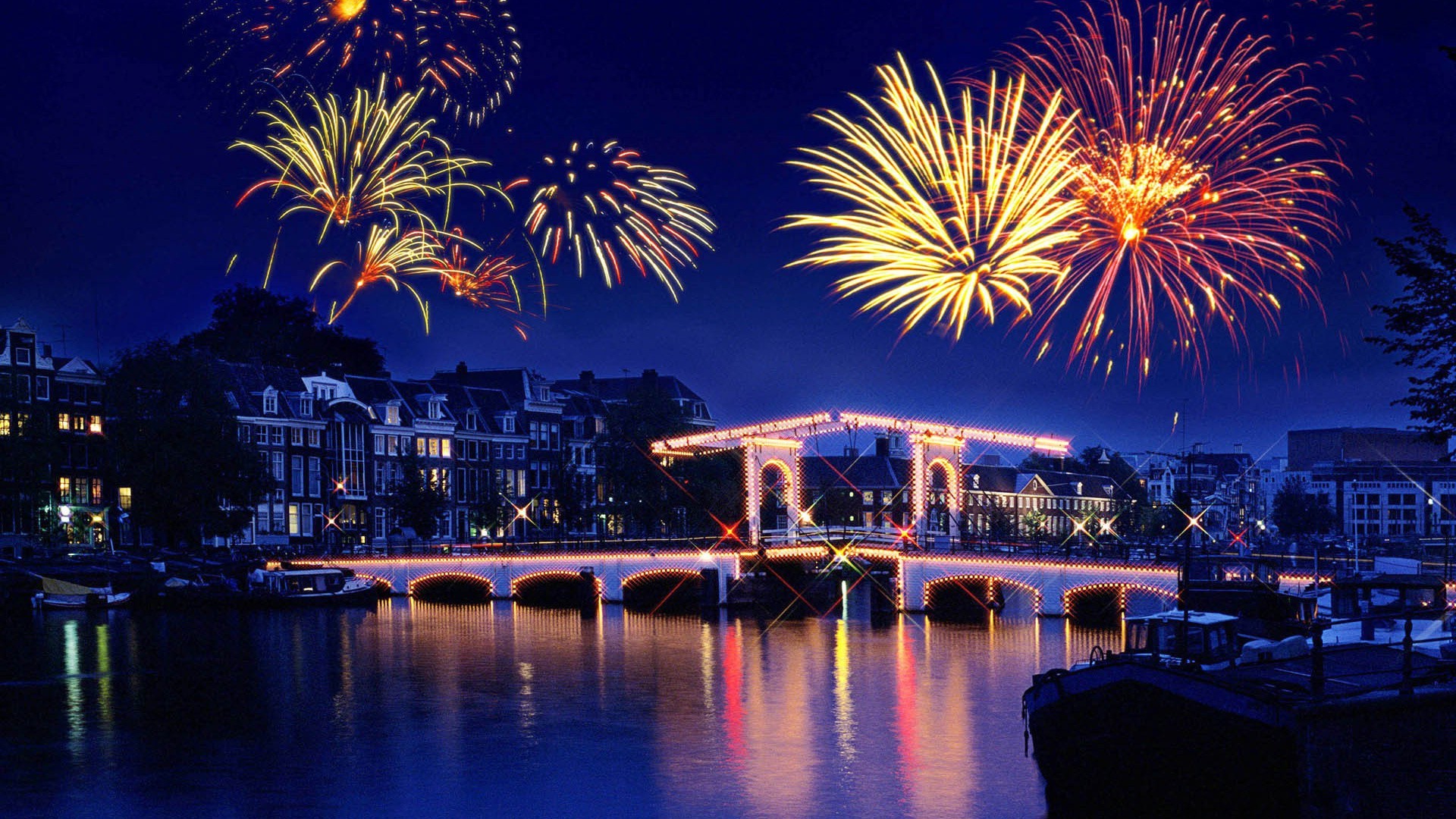 Bird's eye view at night of a big city with skyscrapers illuminated by lights