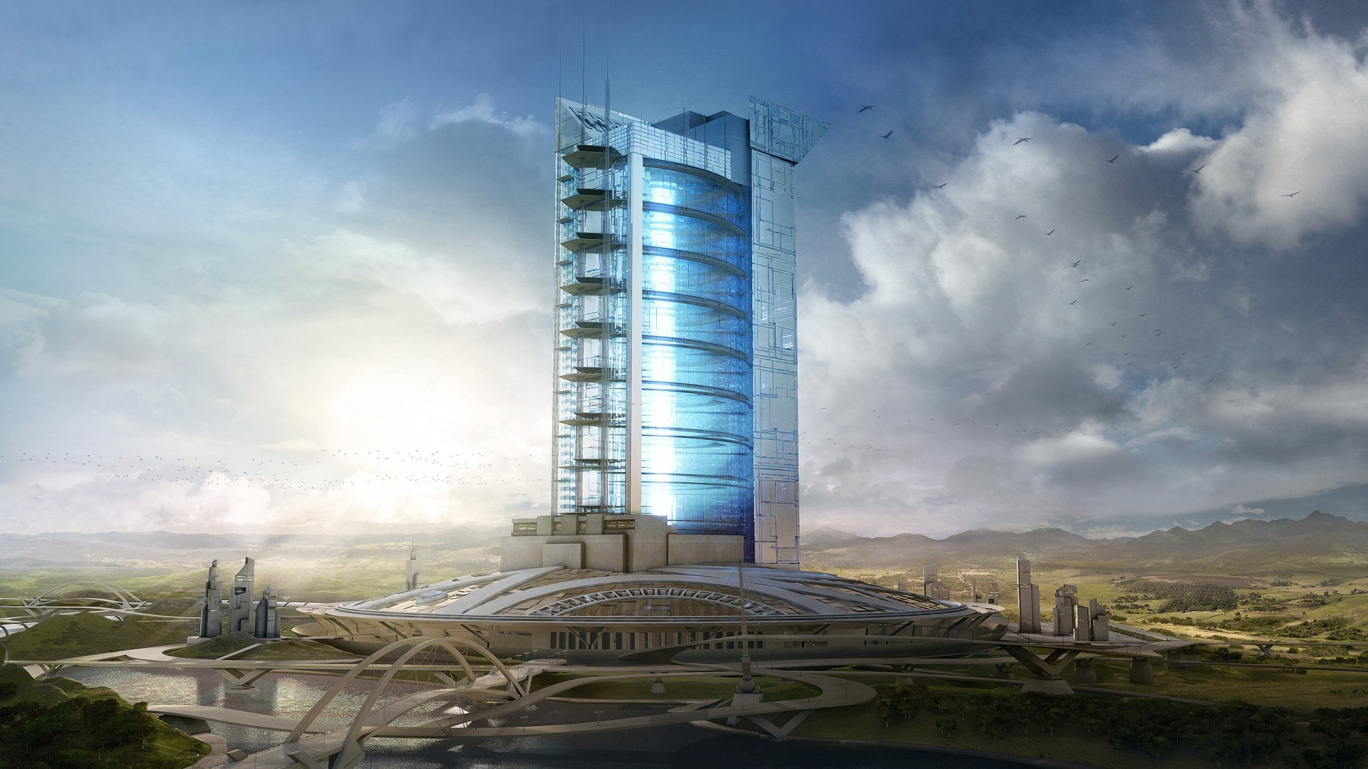 View of the highest skyscraper in the rays of the sun