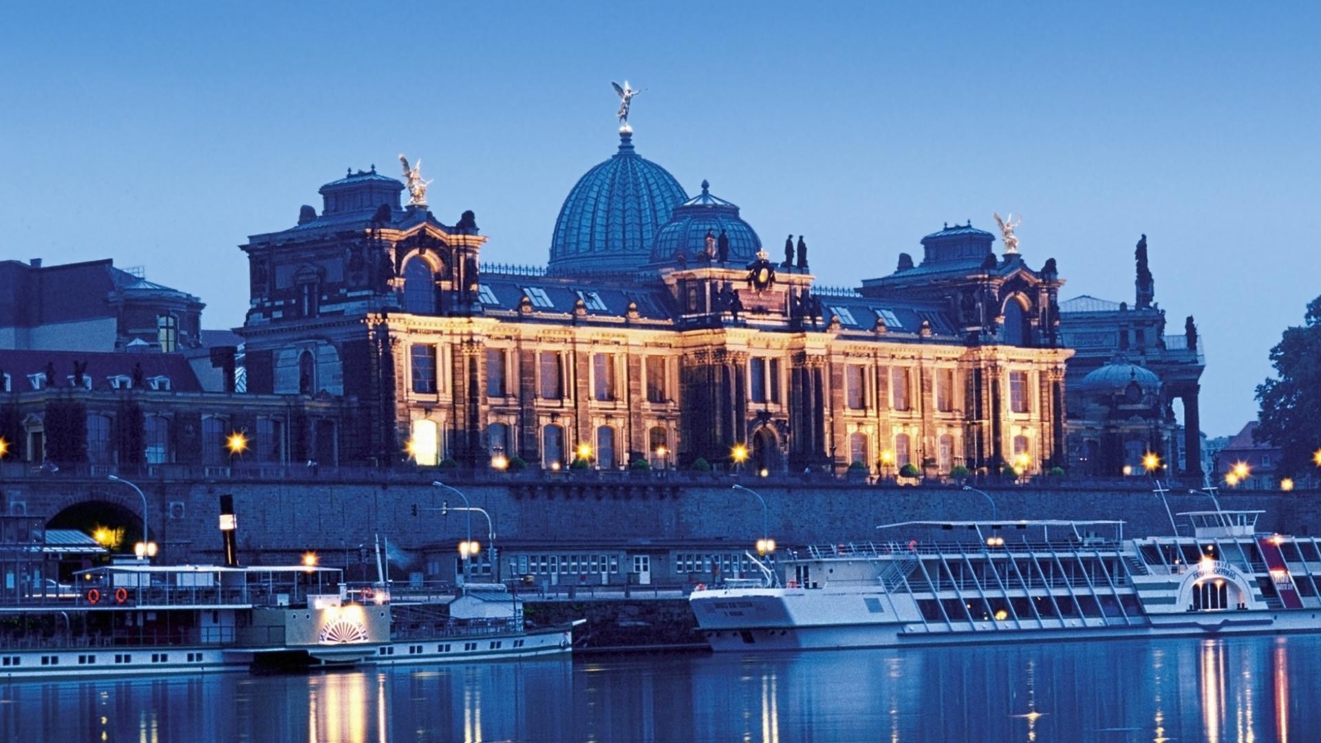 Architecture of a nearby city in blue tones
