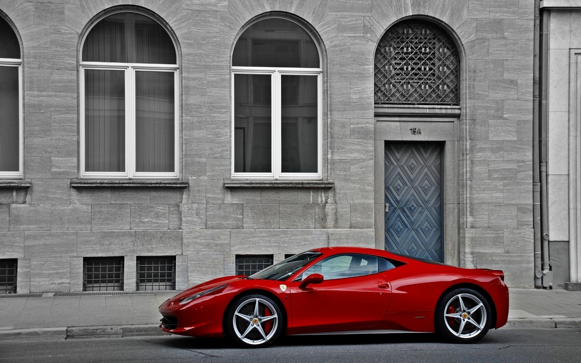 Contrasting image of a red car