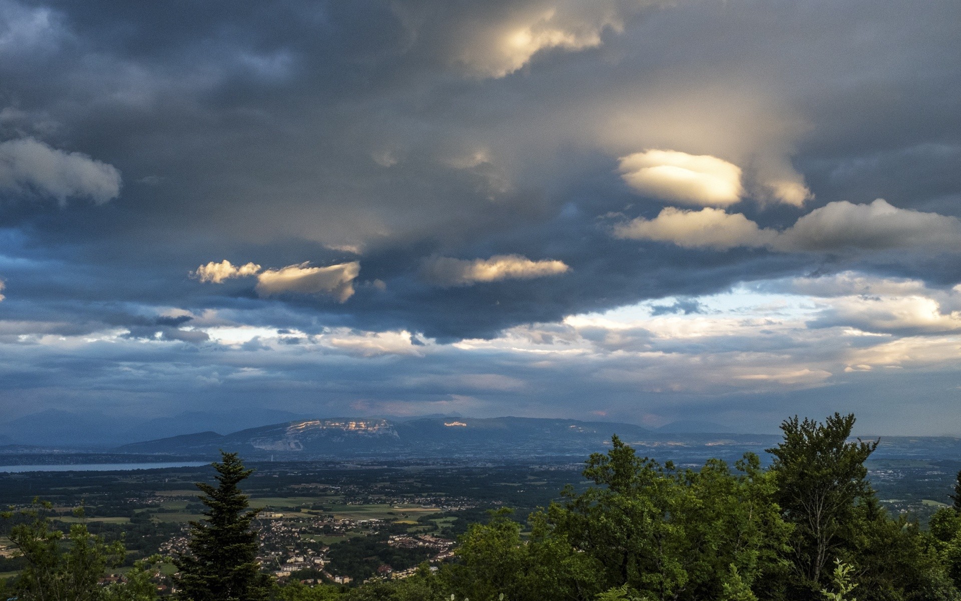 Sky city evening storm lights
