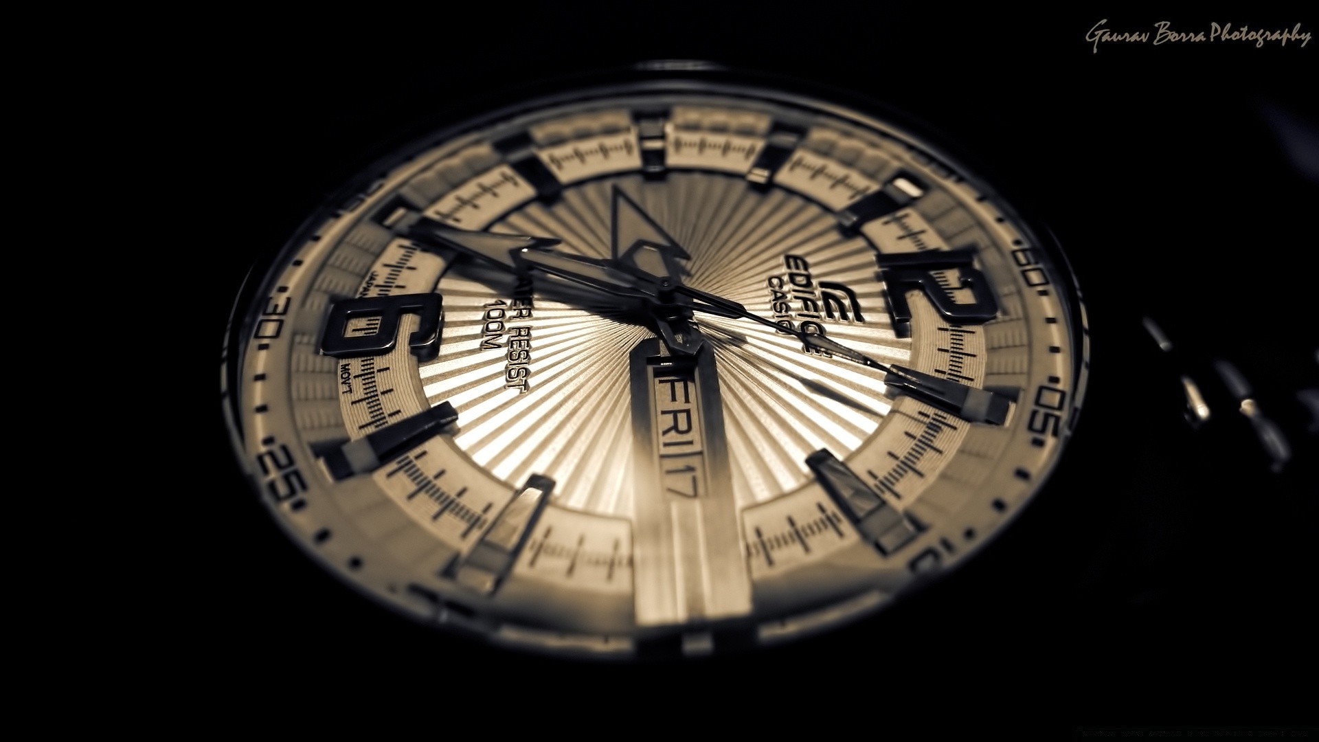 A black-and-white clock, time rushes its flight into the distance and burns bridges between the past and the present