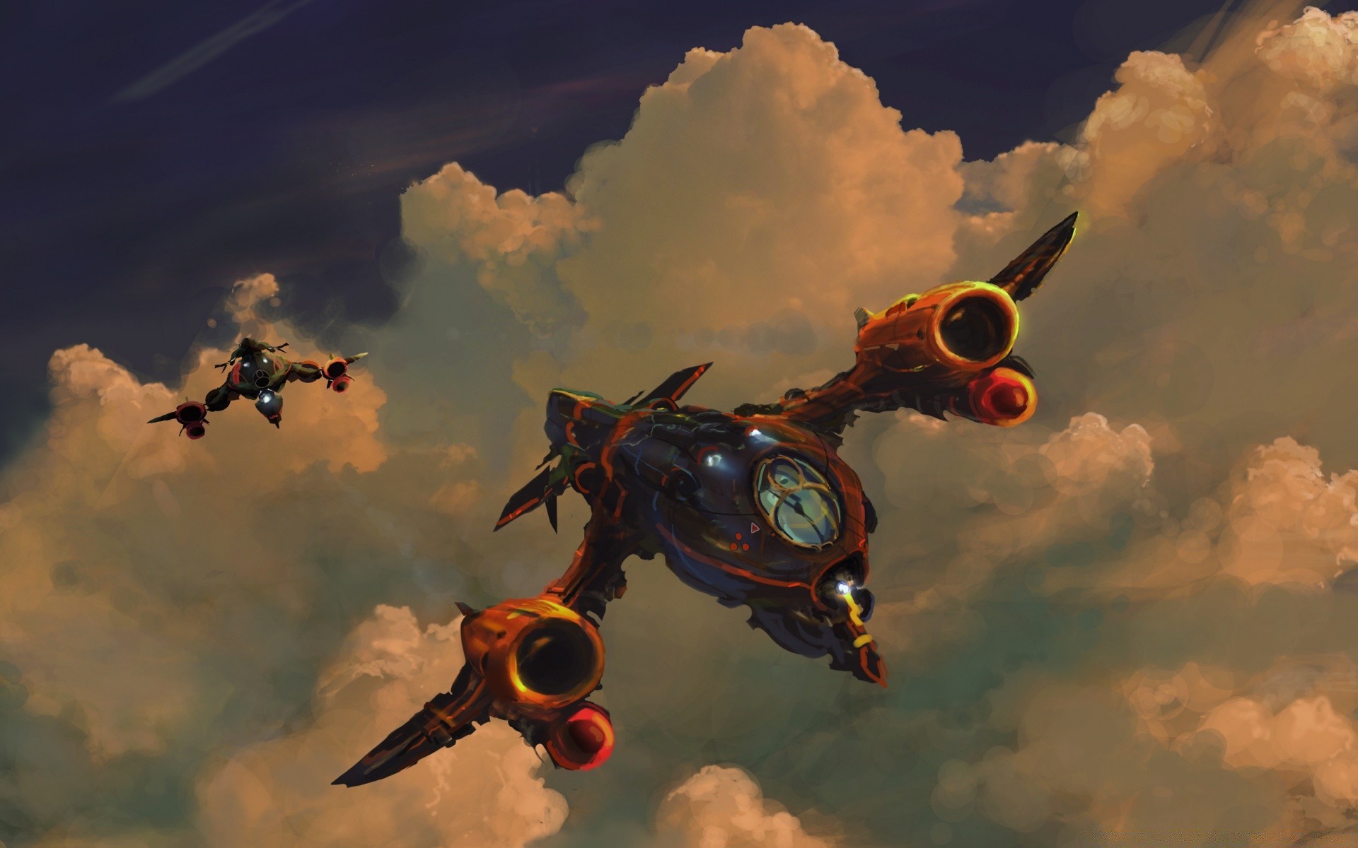 Sunset in the clouds over the lake view from the hillSunset in the clouds over the lake view from the hill