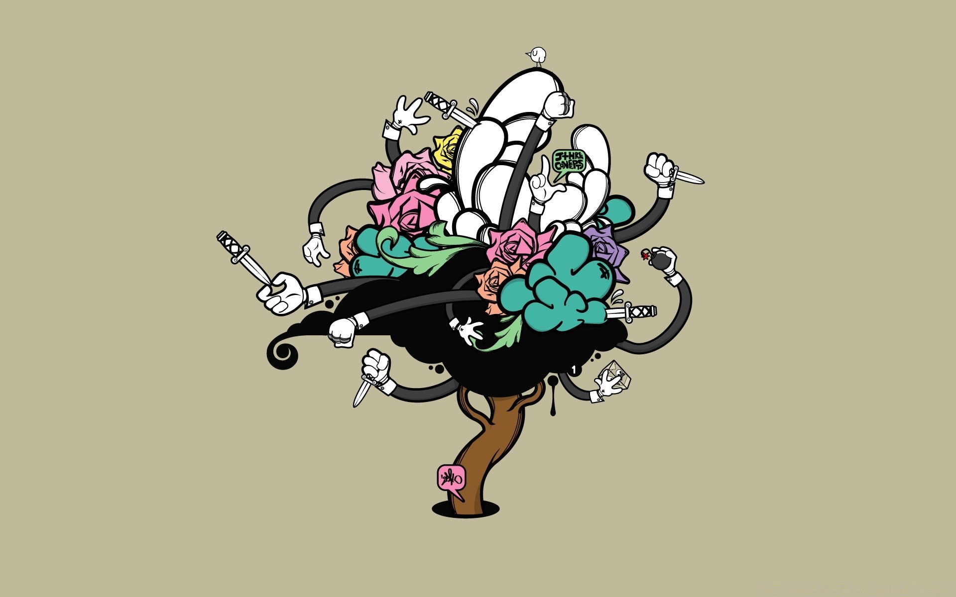 A tree with cold weapons in its hands