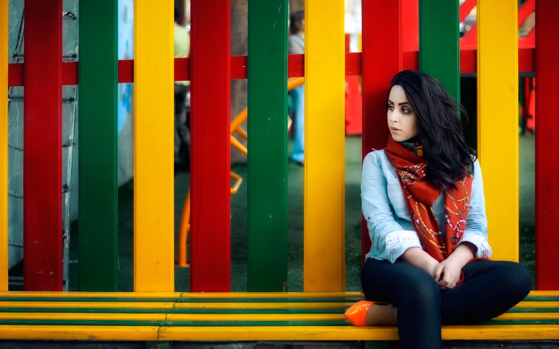 A woman near a colorful fence
