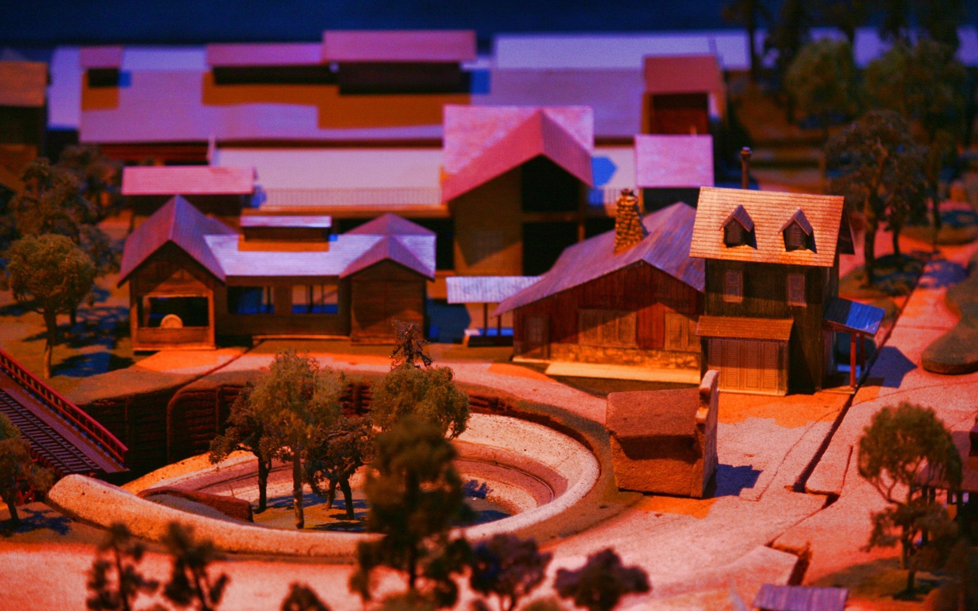 Small houses at dusk