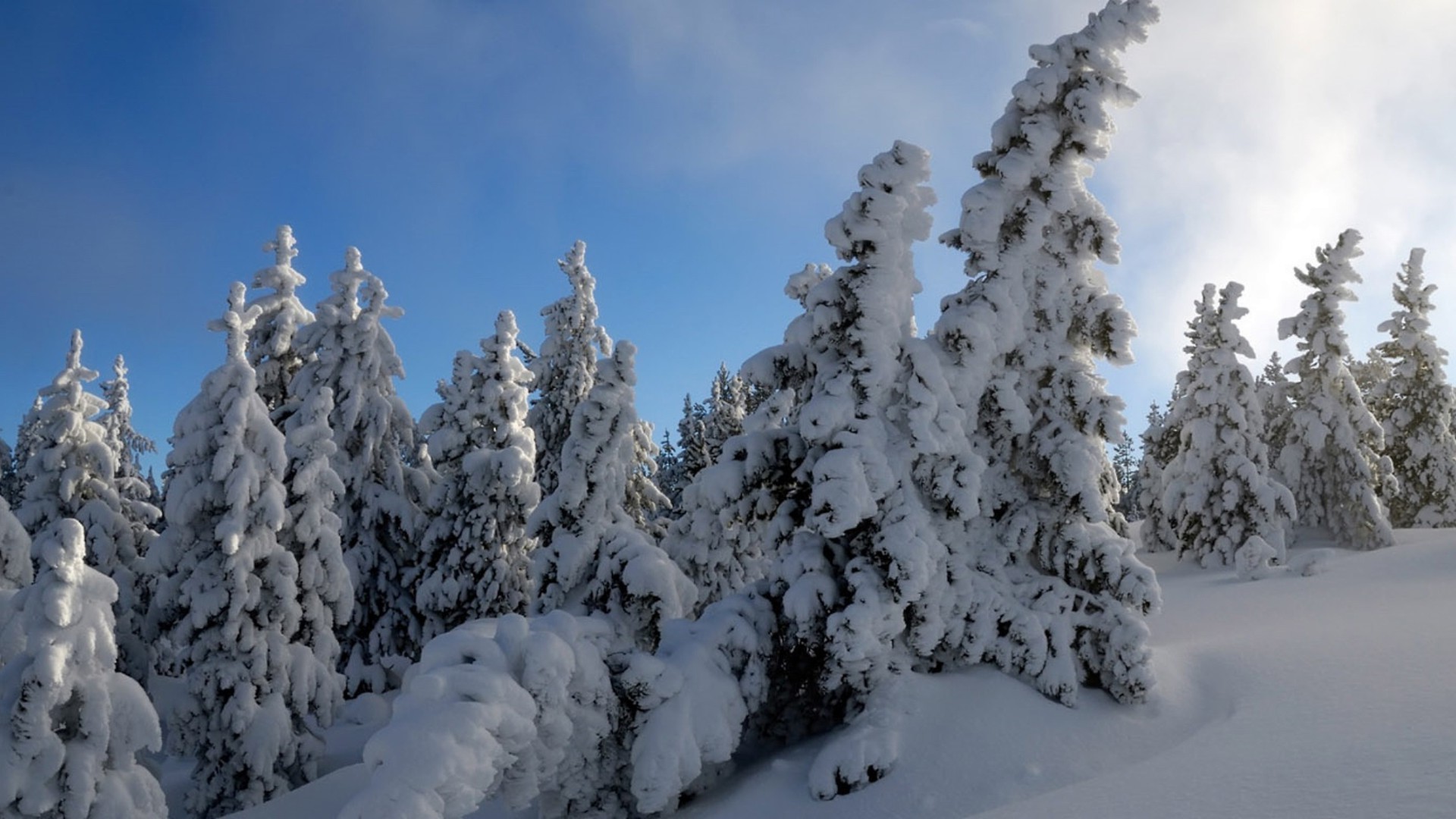 Mountain peak in the winter season. Snow-covered mountain peak in the azure sky
