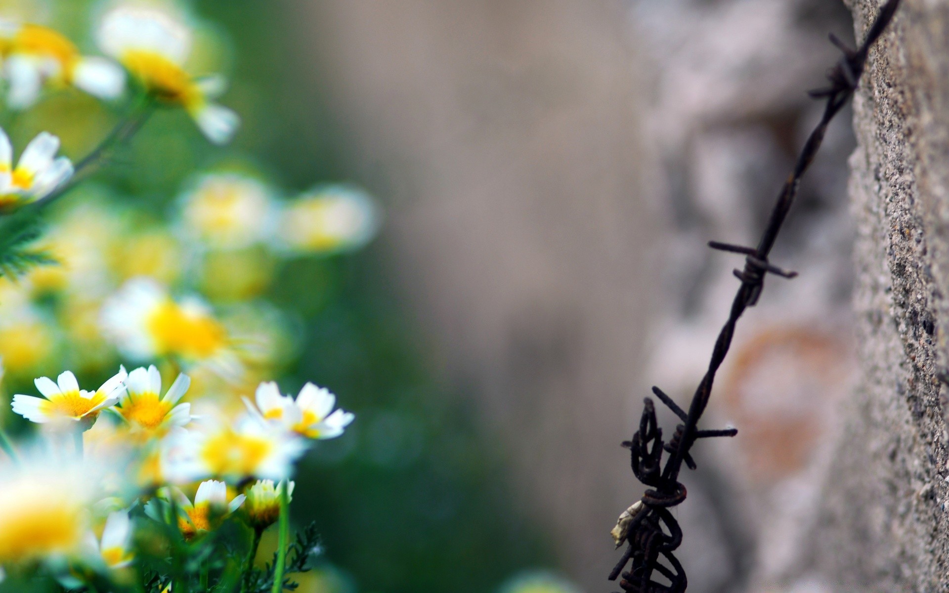 Barbed wire and white daisies
