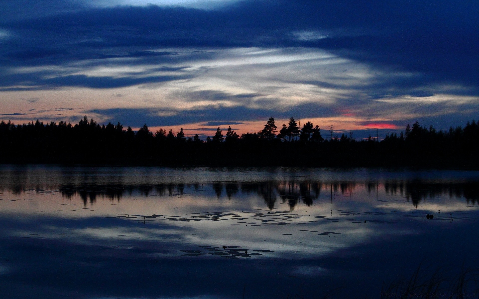Dawn in the sky from behind the clouds by the waterDawn in the sky from behind the clouds by the water