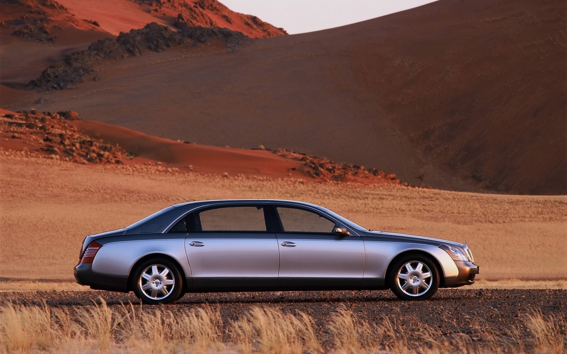 A car in the yellow desert on the road