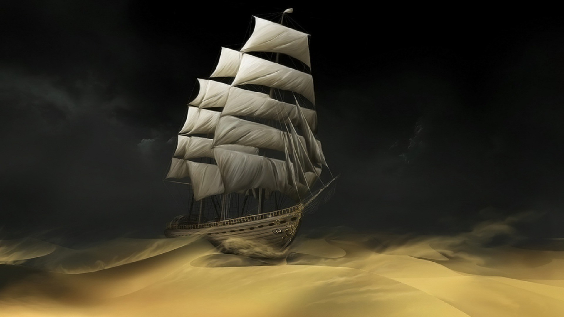 A flying piece of land against the sky with a waterfall and a white eagle streaming from it