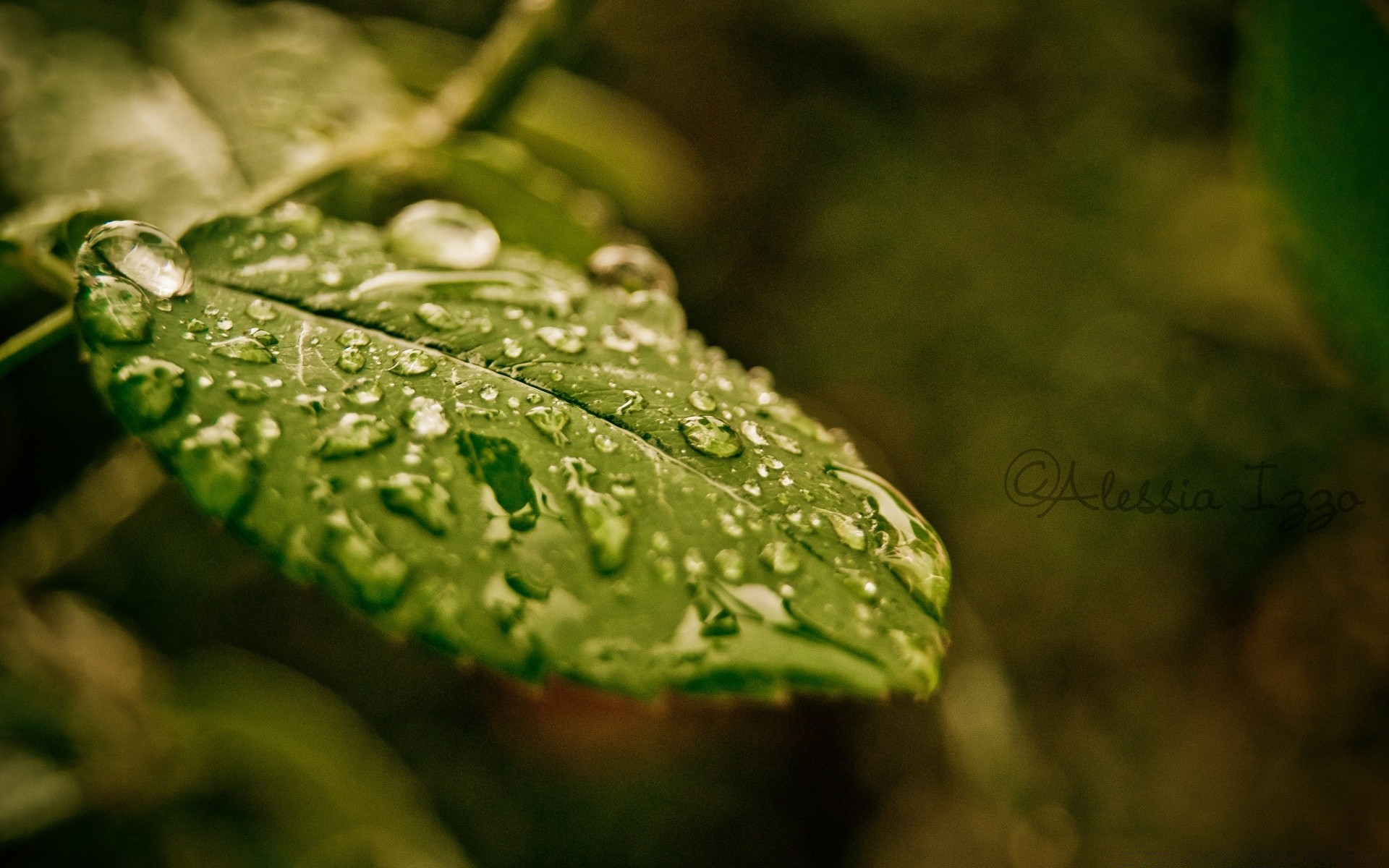 Shiny water drops on the grass in gray tones on a blurry background onShiny water drops on the grass in gray tones on a blurry background on