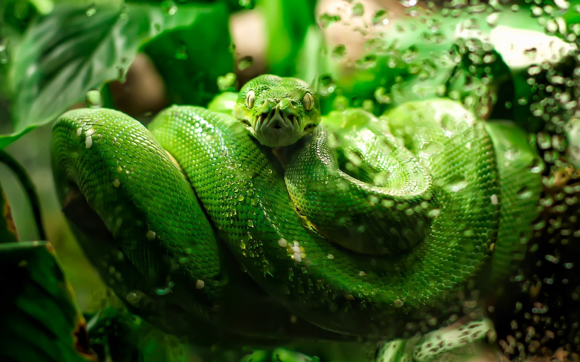 Green Python teeth venom eyes Snake skin