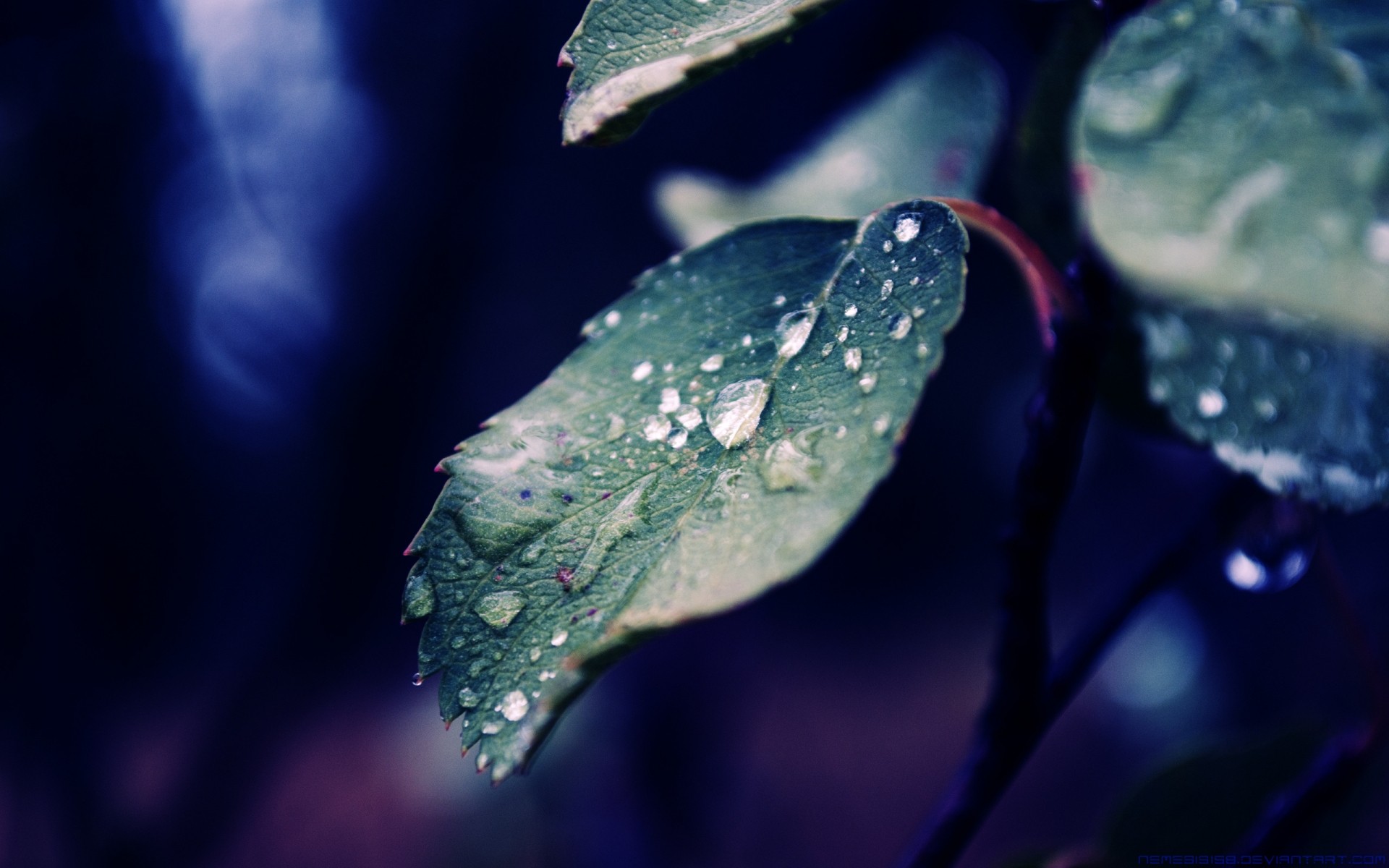 Raindrops hanging from the plant