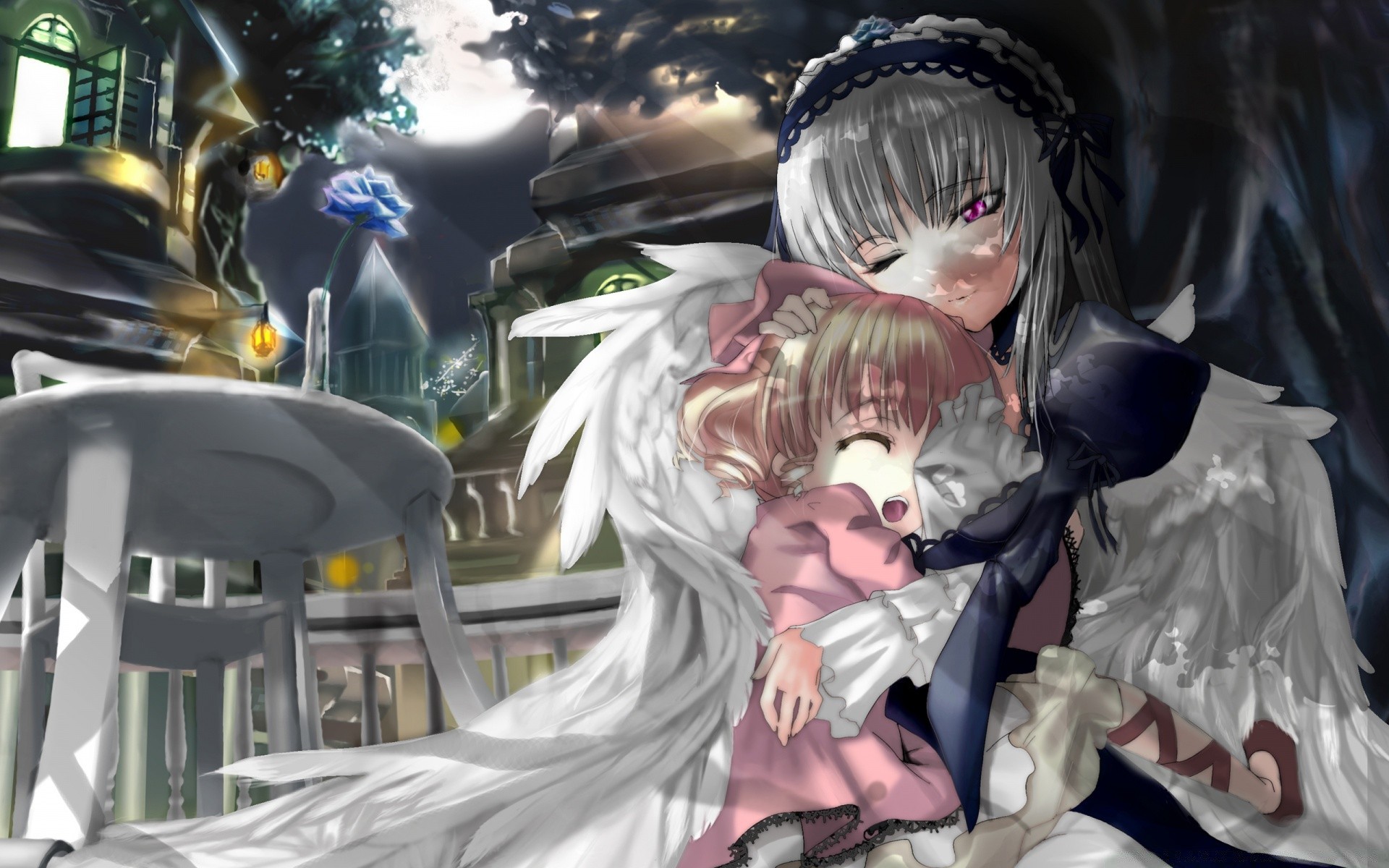 Angel with a girl in anime style