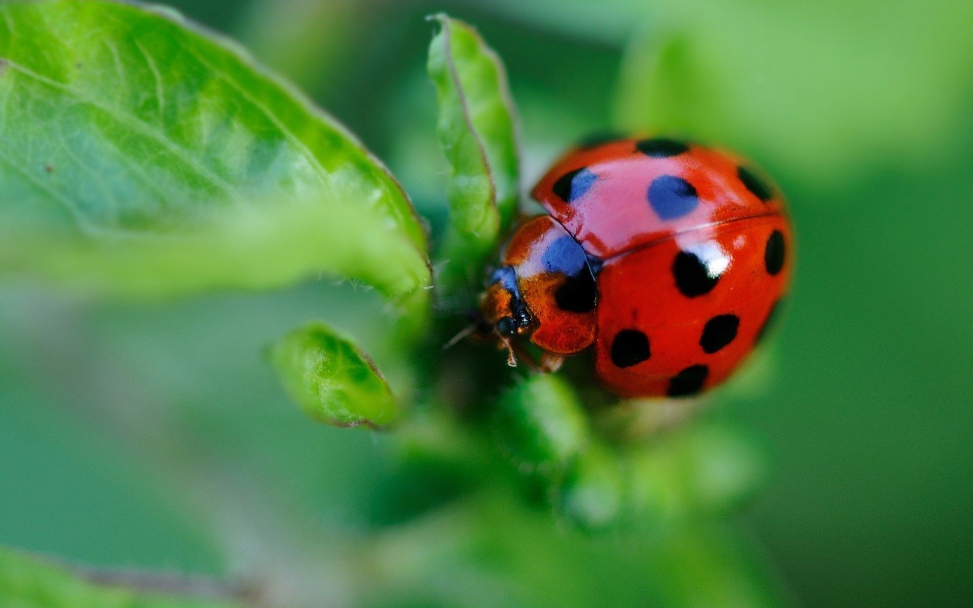 Photo of a ladybug on a green leaf
