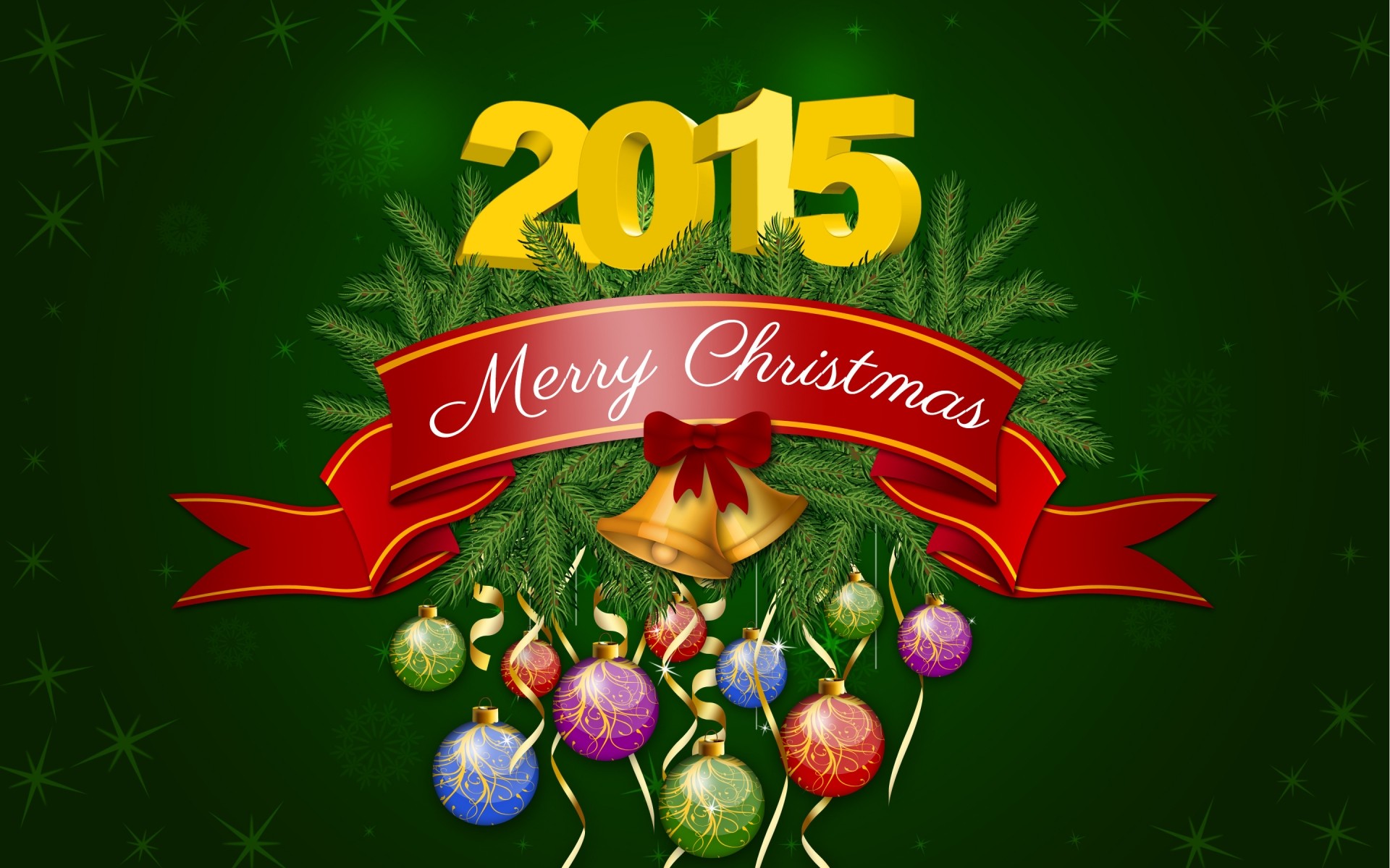Inscription 2015 Merry Christmas with Christmas tree decorations